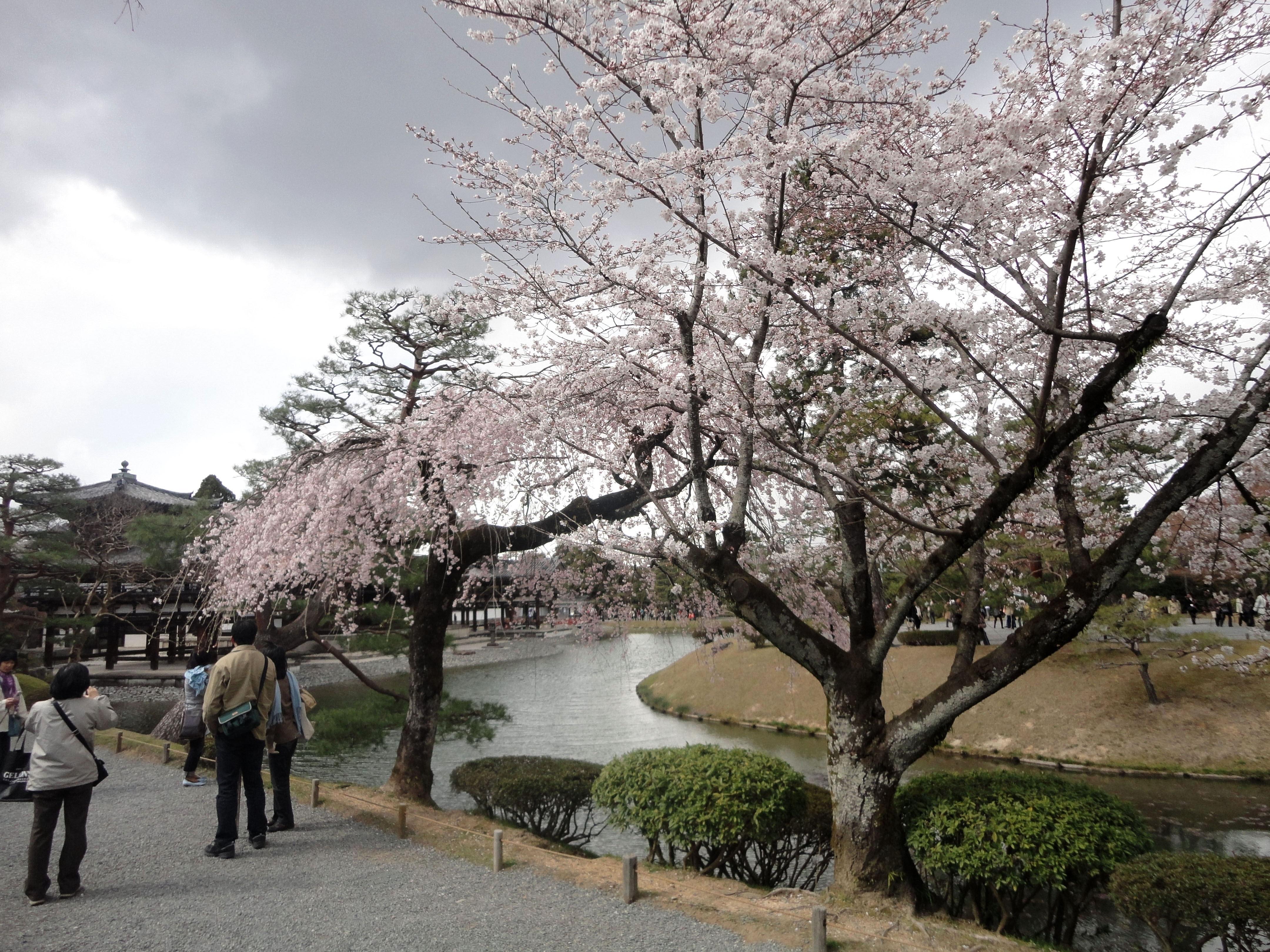 Pink Cherry tree blossoms Byodo in temple Jodo shiki garden Kyoto Japan 03