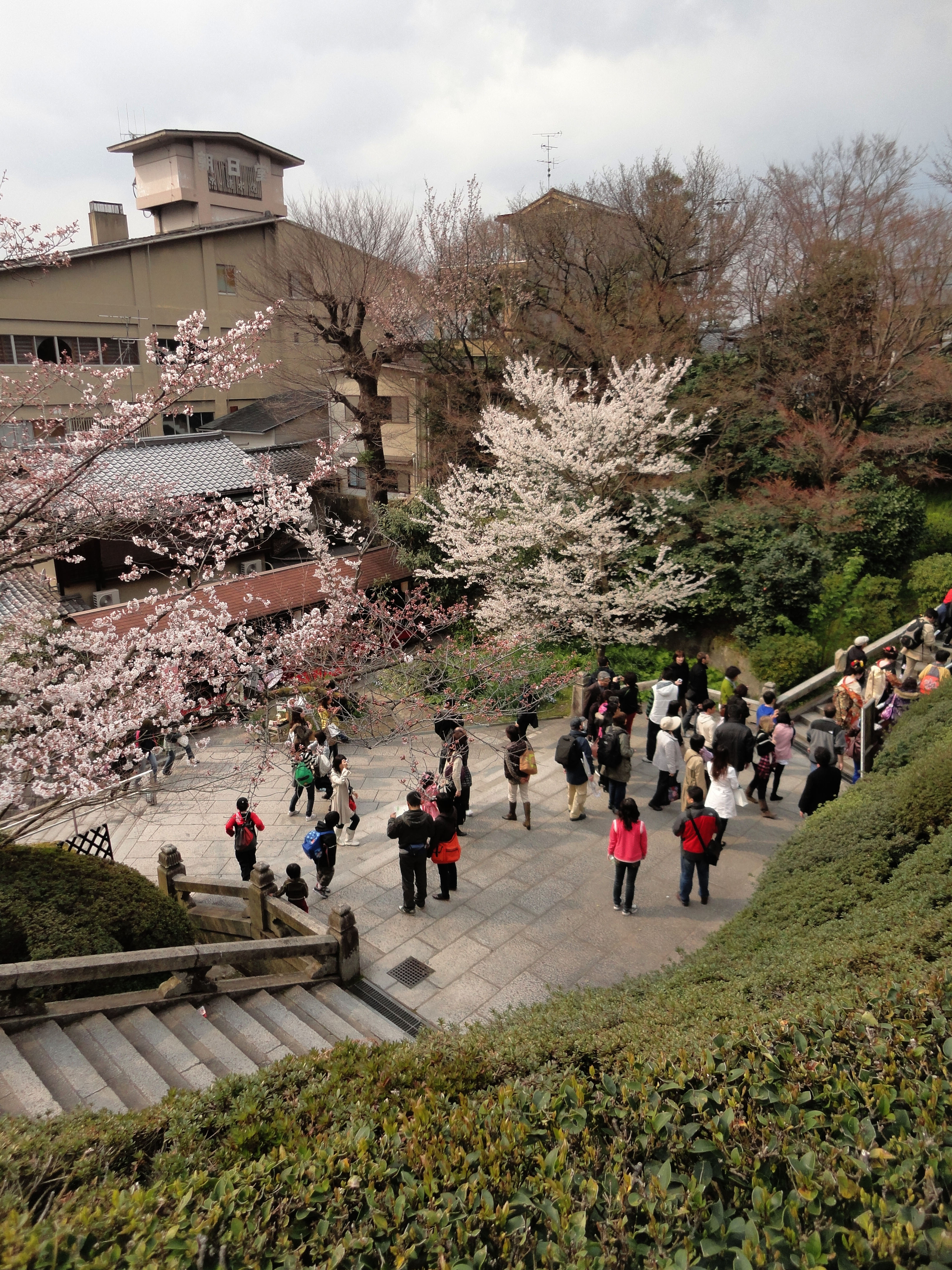 Kiyomizu dera entrance facing back towards Kyoto during cherry blossom season 01