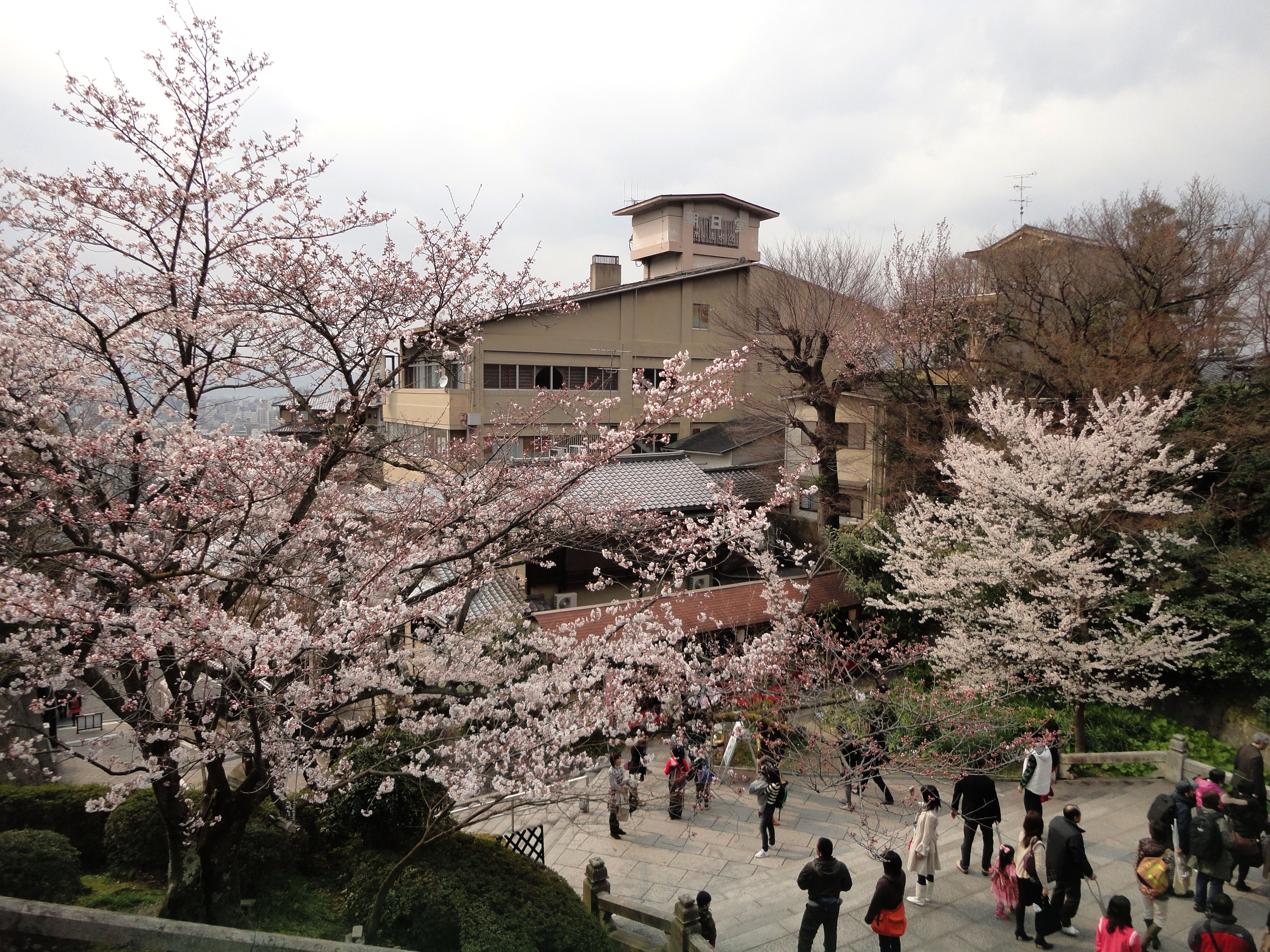 Kiyomizu dera entrance facing back towards Kyoto during cherry blossom season 02