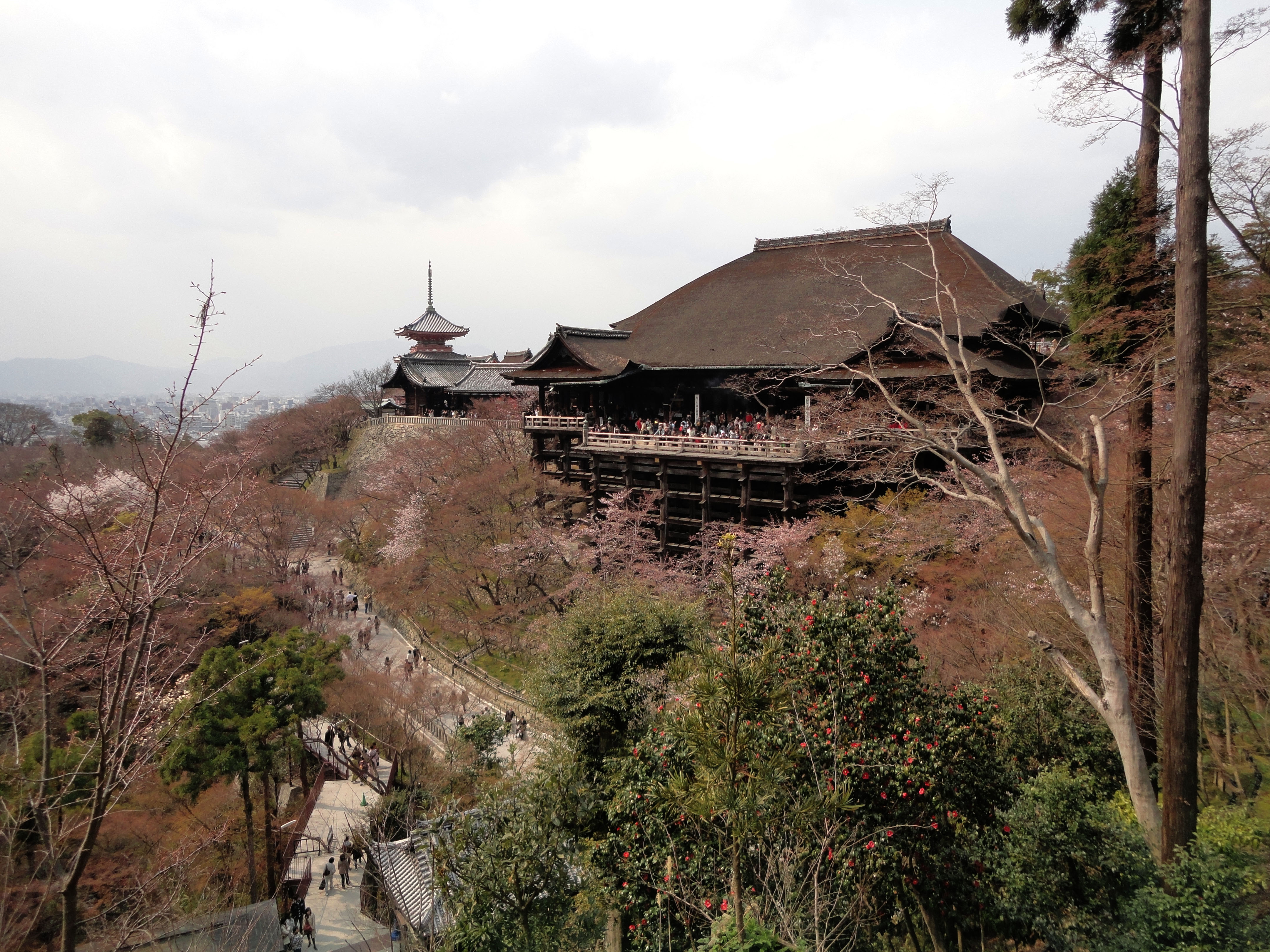 Otowa san Kiyomizu dera Pagoda Hon do Kyoto during cherry blossom season Mar 2010 03