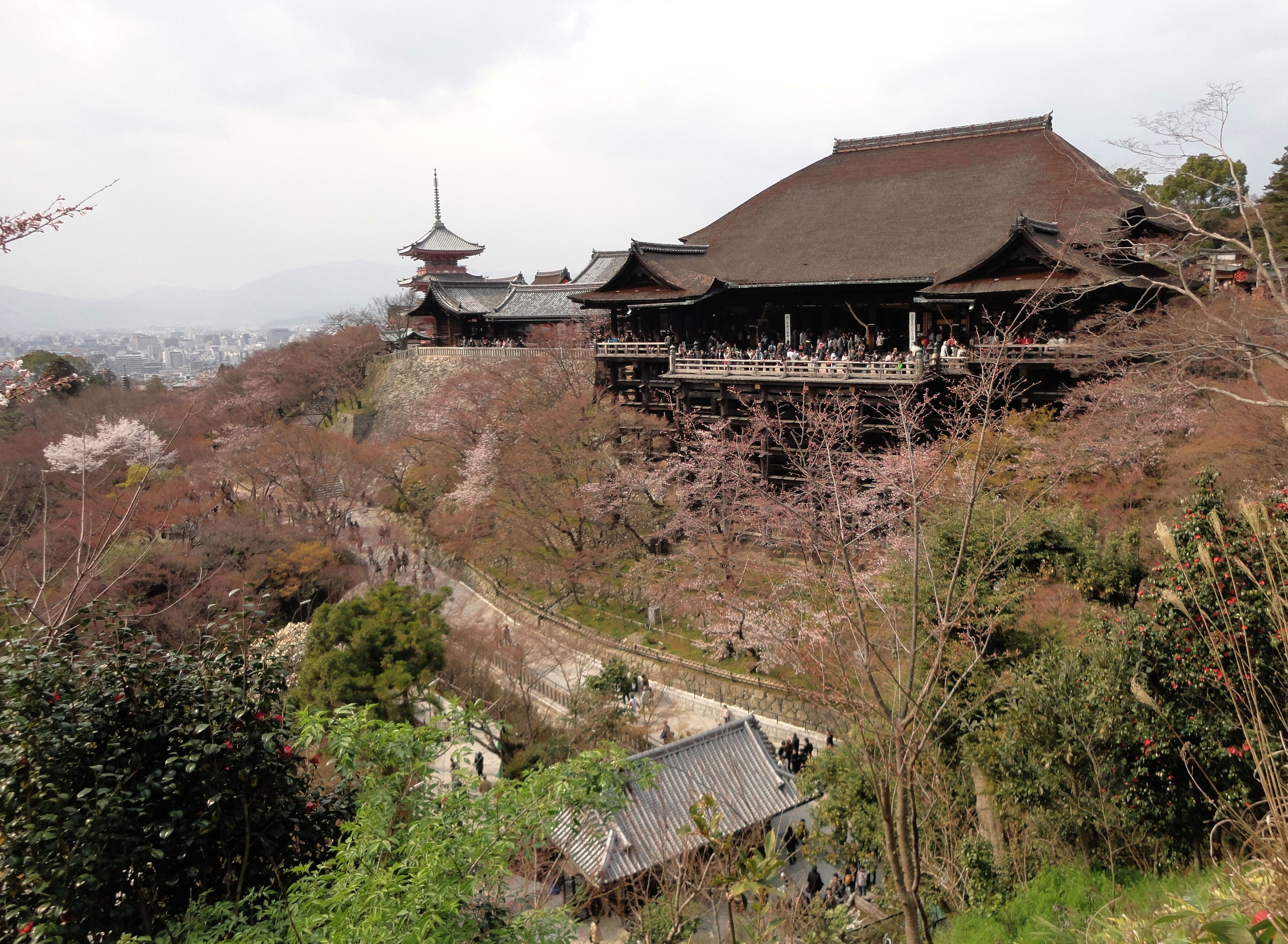 Otowa san Kiyomizu dera Pagoda Hon do Kyoto during cherry blossom season Mar 2010 04