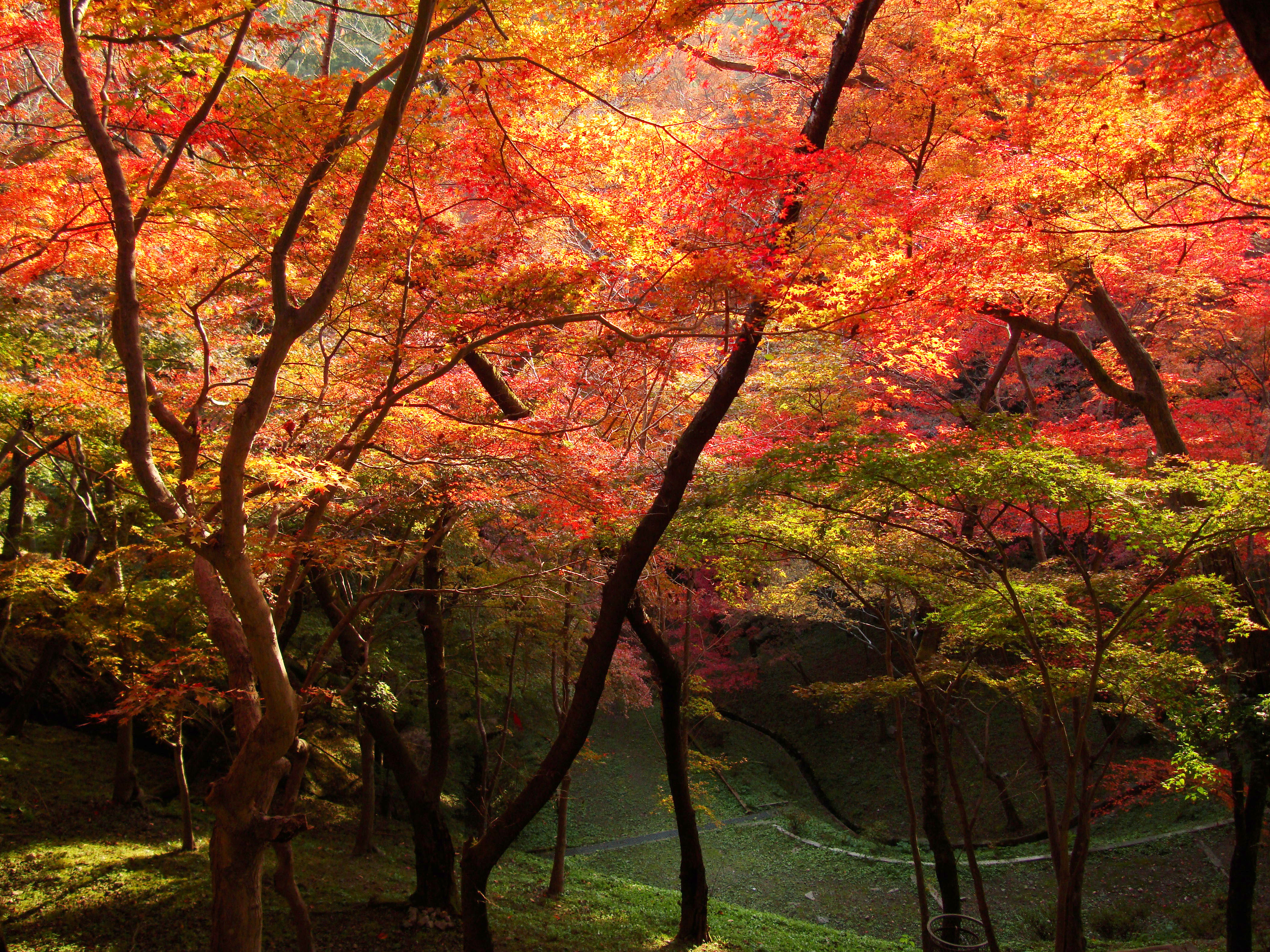 Maple trees Autumn leaves Kiyomizu dera Kyoto Japan Nov 2009 100