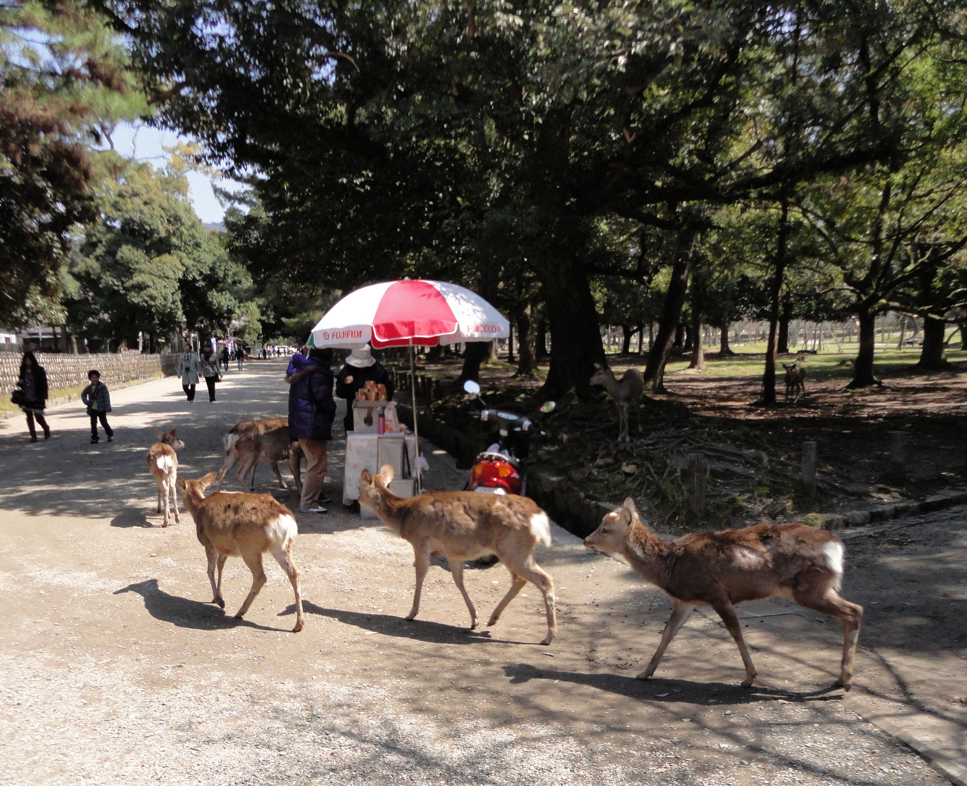 Sika deer congregating around the biscuit venders form a symbiotic relationship 01