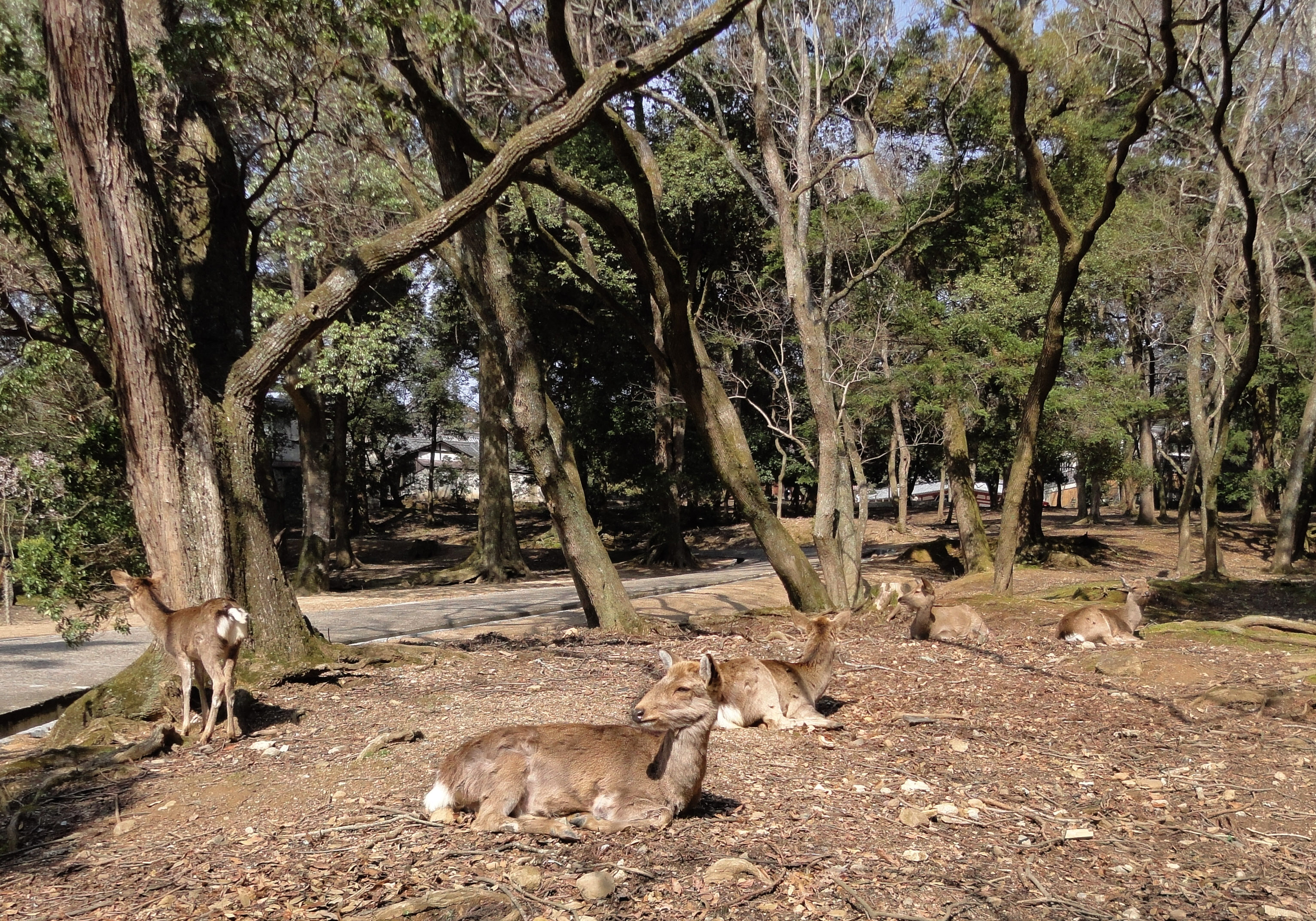 Spotted Deer enjoying the sunny weather Nara Japan 01