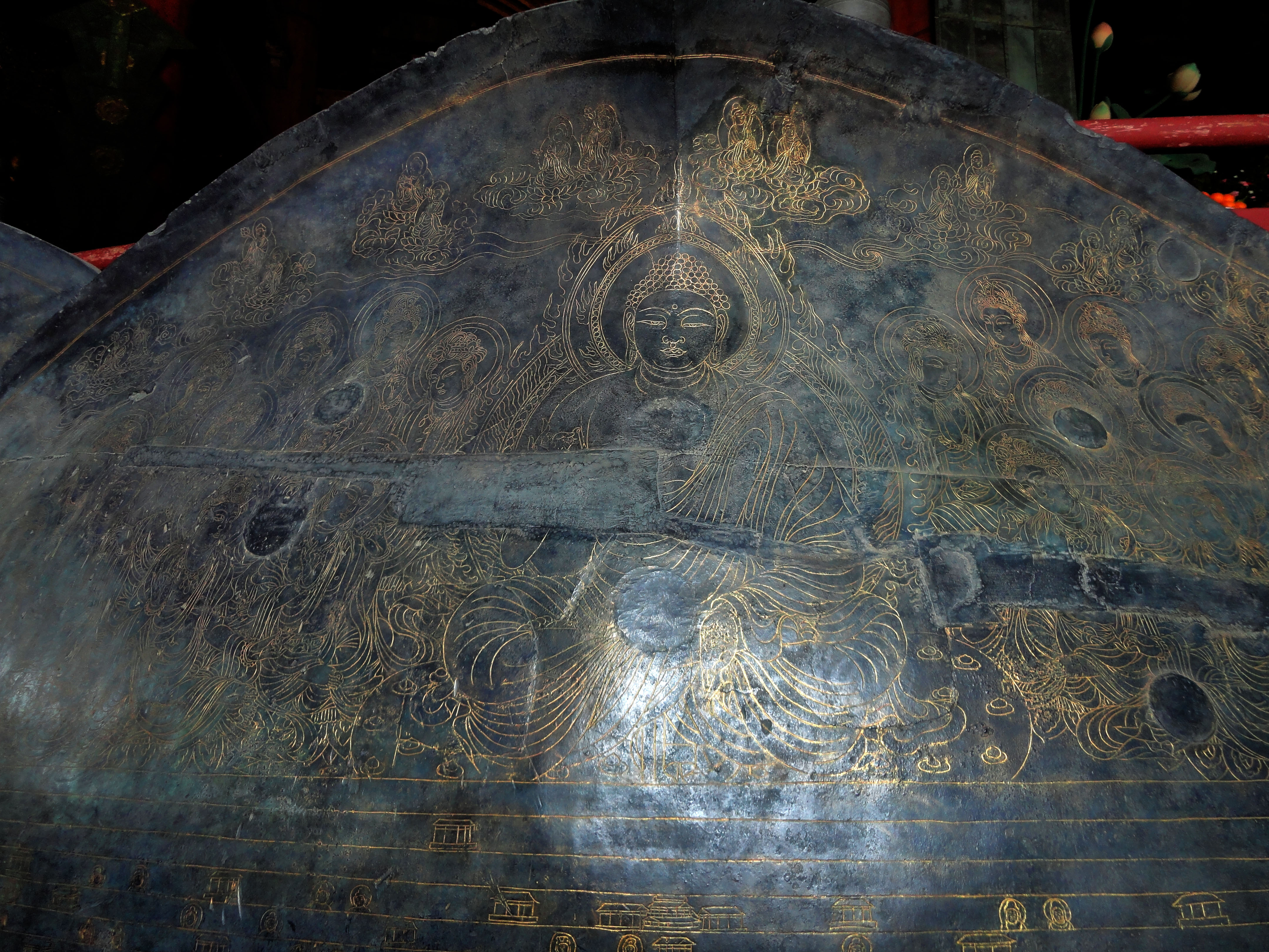 3 Bodisattvas incised on Lotus Petal of the throne of Buddha Vairocana 8th century 01