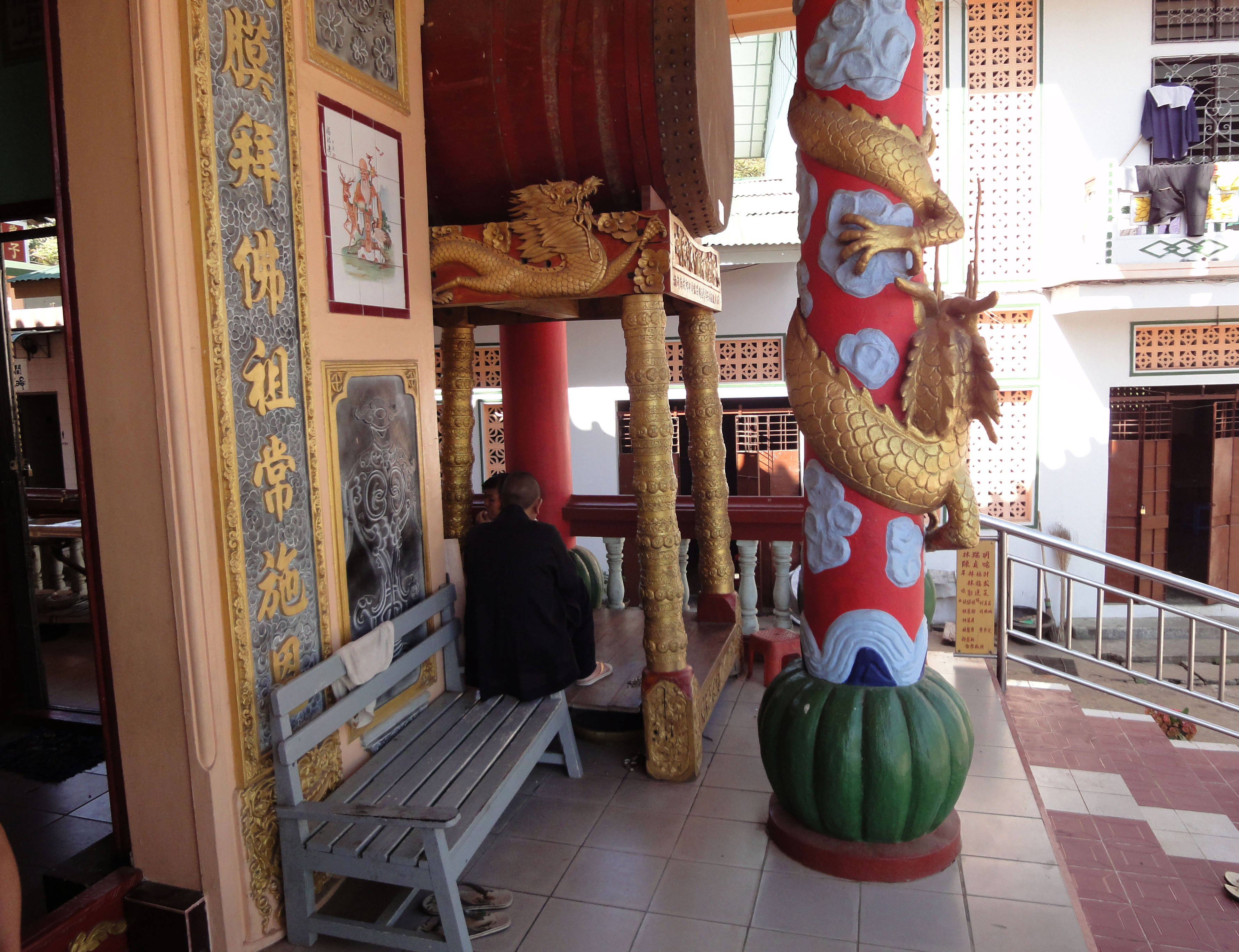 Bago Chinese Monastery ornate dragon guardian pillars Jan 2010 03