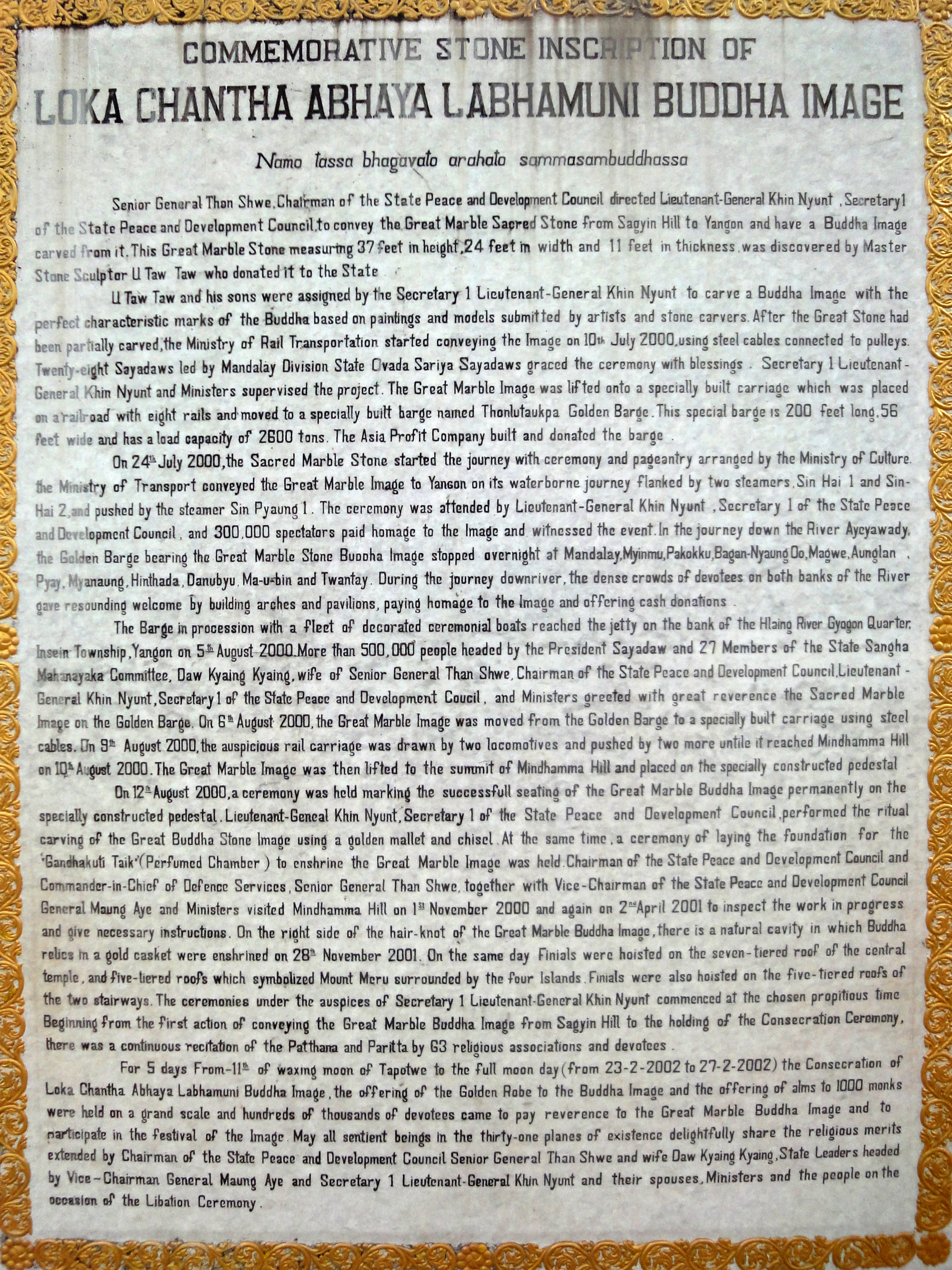 Loka Chantha Abhaya Labhamuni Buddha commemorative stone inscription 02