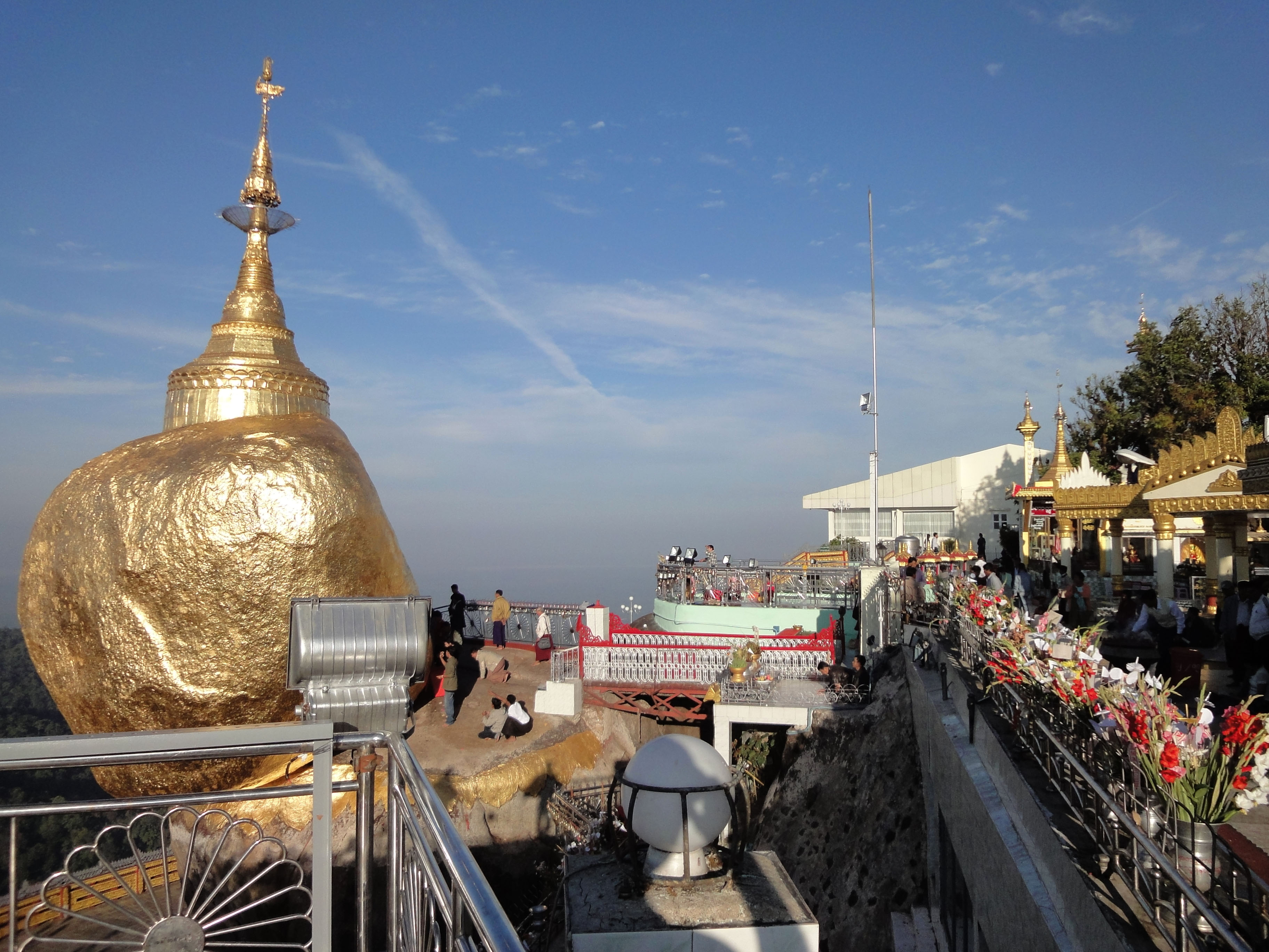 Kyaiktiyo Pagoda paying homage to the Buddha with flower offerings 01
