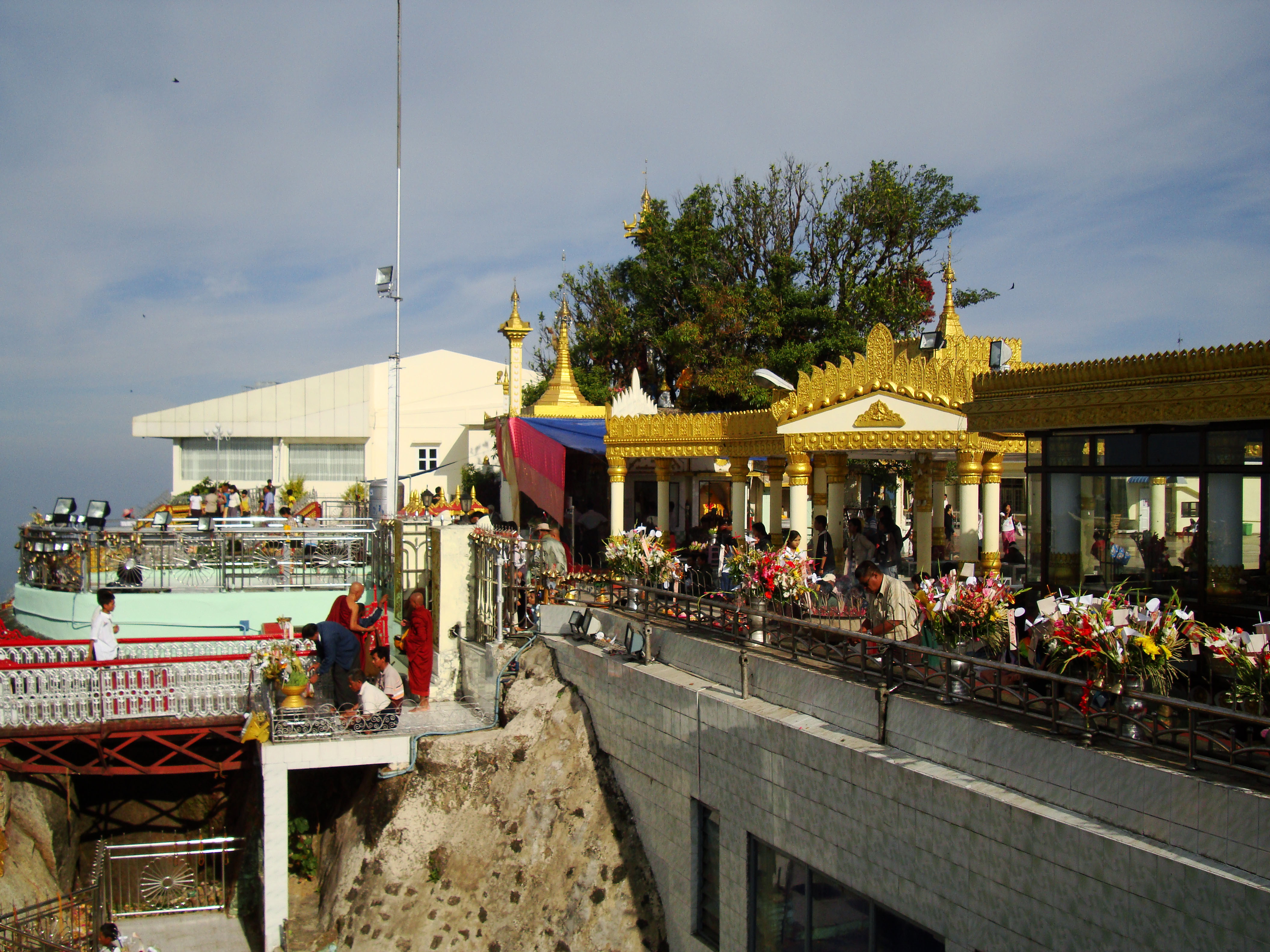 Kyaiktiyo Pagoda paying homage to the Buddha with flower offerings 04