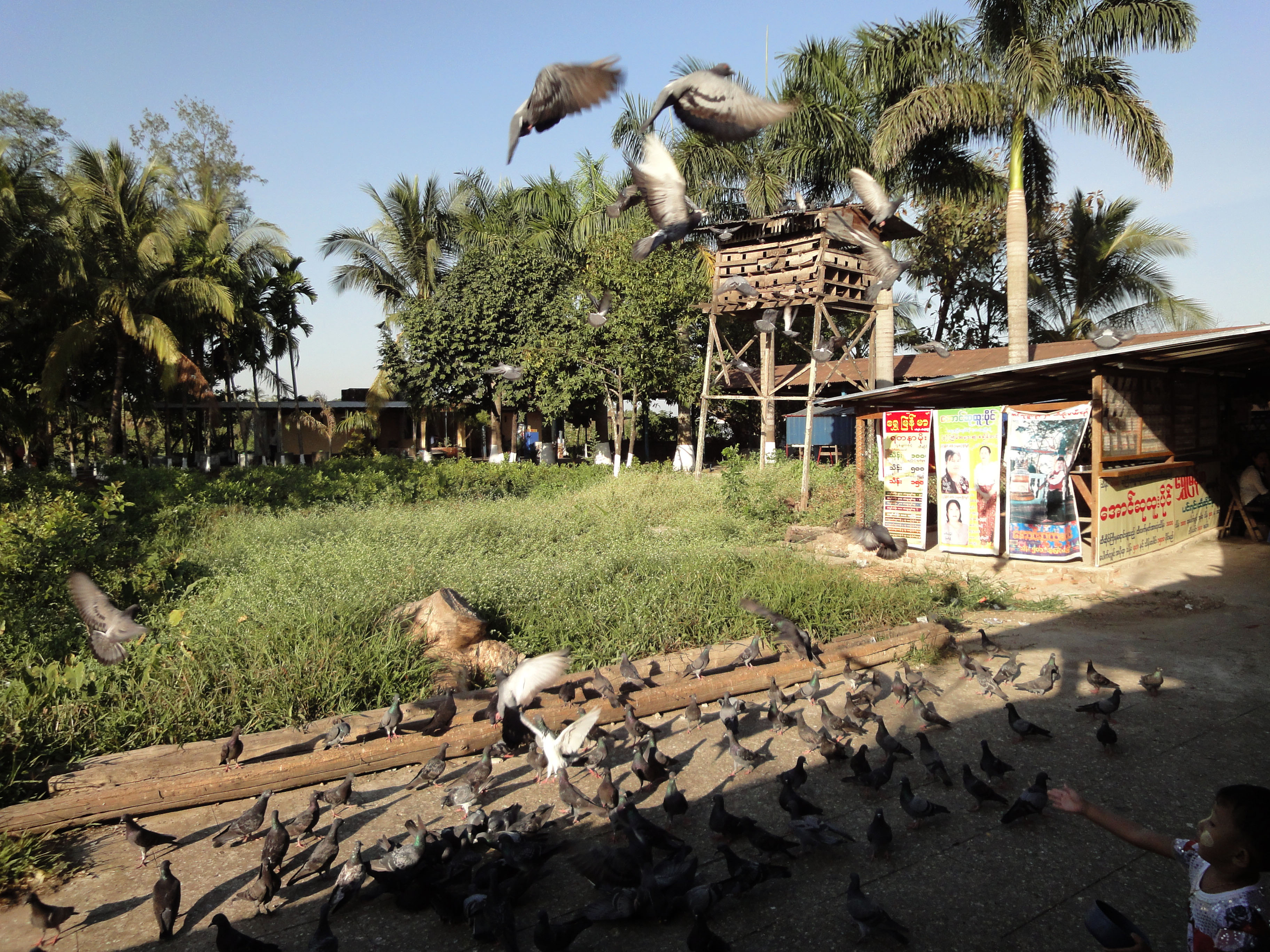 Meilamu Pagoda feeding the Pigeons Yangon Myanmar 02