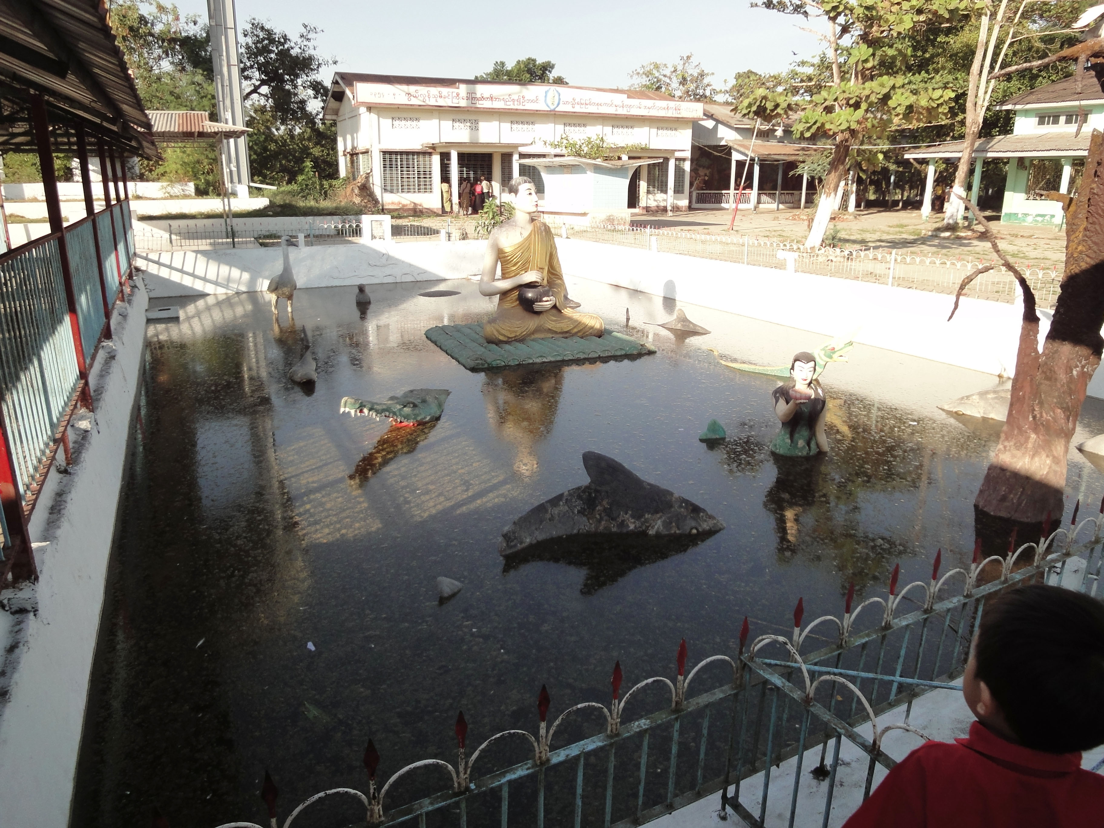 Meilamu Pagoda small pond statues Yangon Myanmar 01