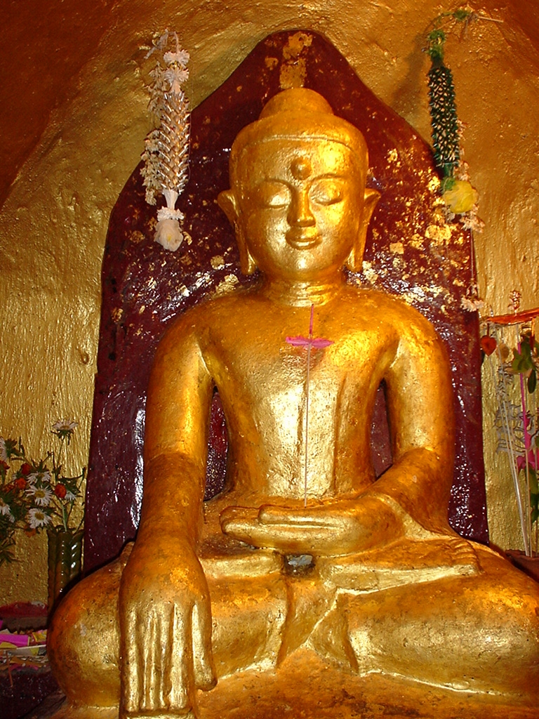 Pagan Shwezigon Pagoda main Buddhas Dec 2000 02