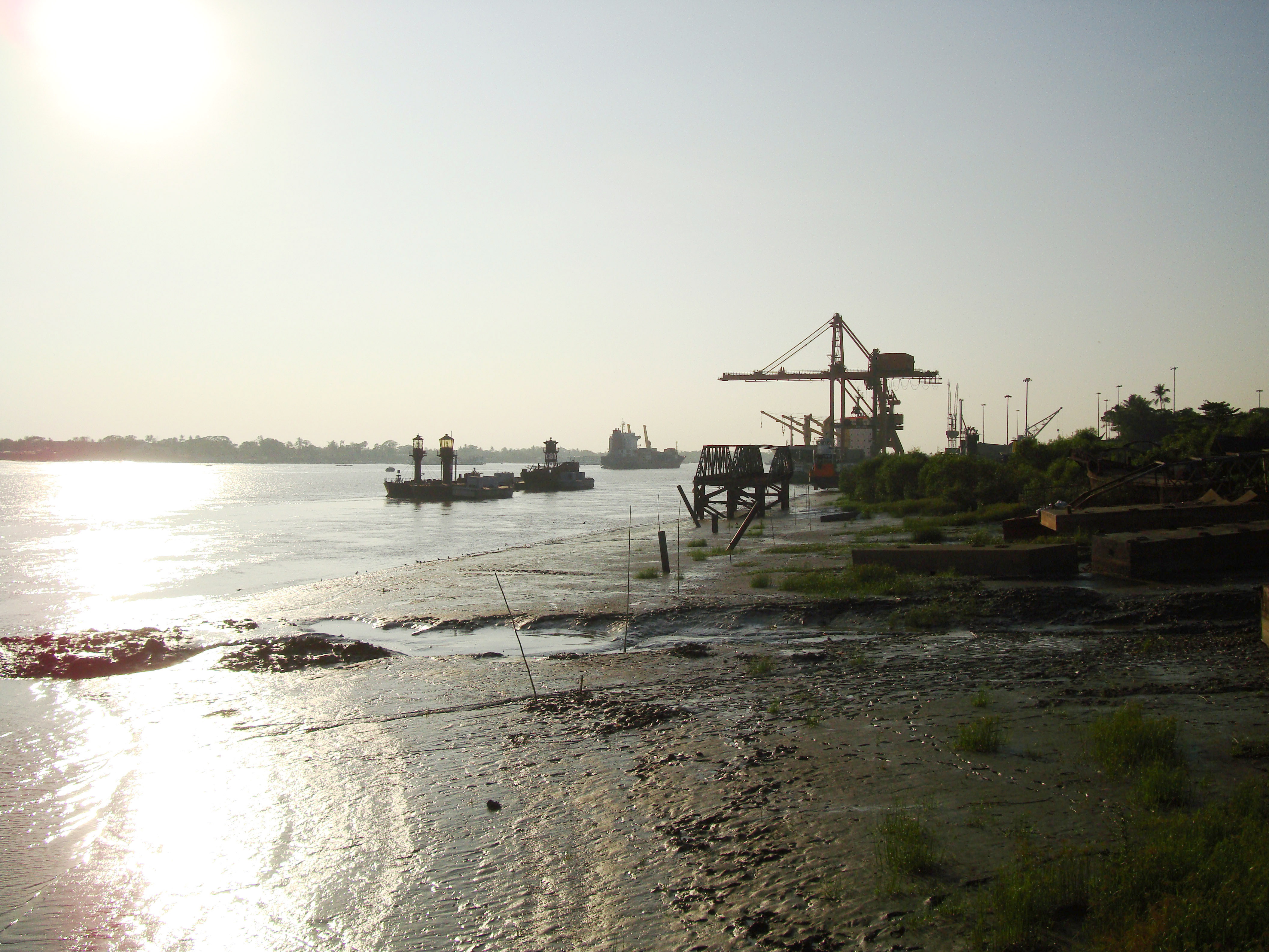 Myanmar Yangon port low tide showing silt buildup Dec 2009 01