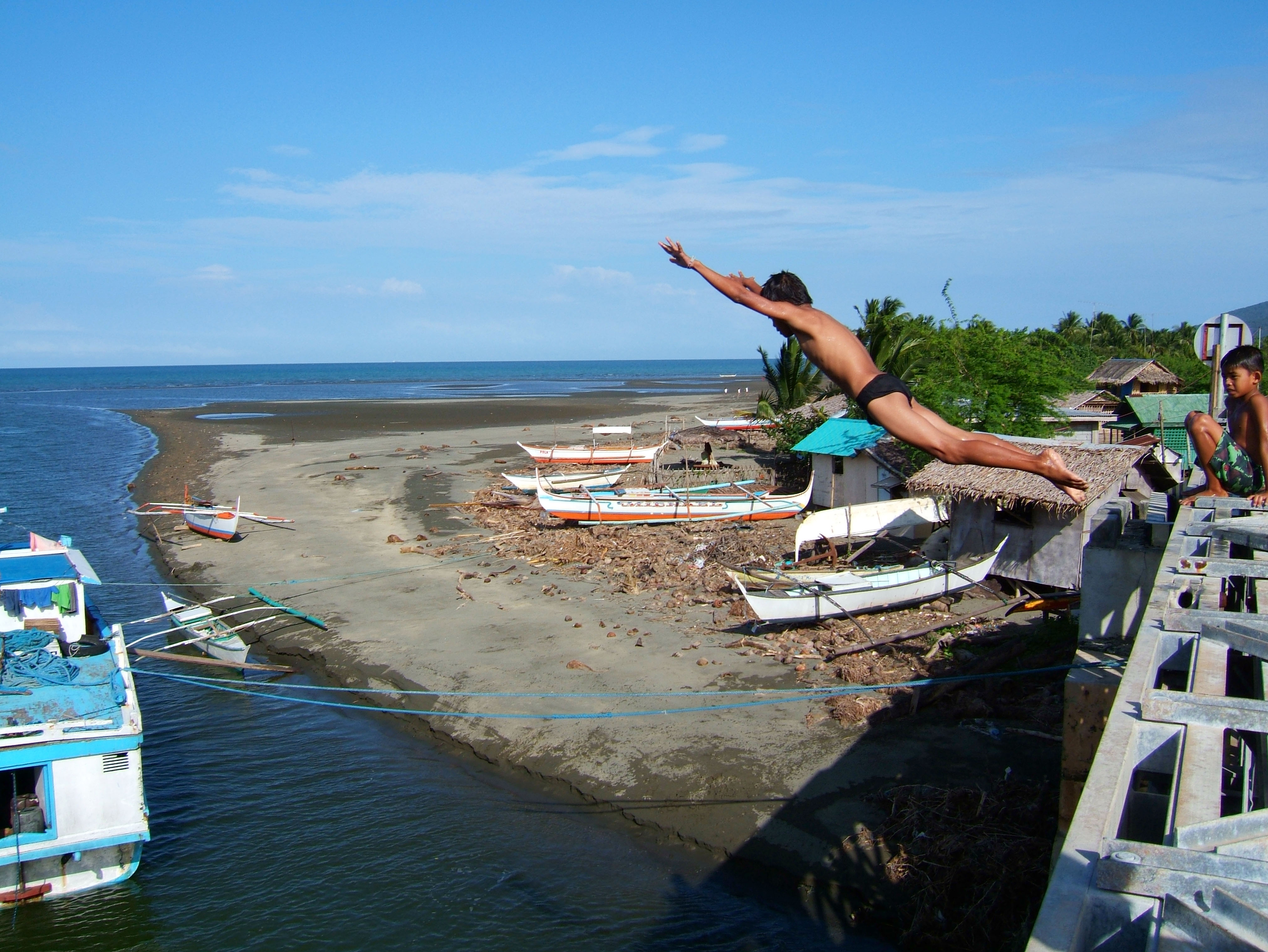 Kids diving of Naujan Estrella bridge Oriental Mindoro Philippines Feb 2006 32