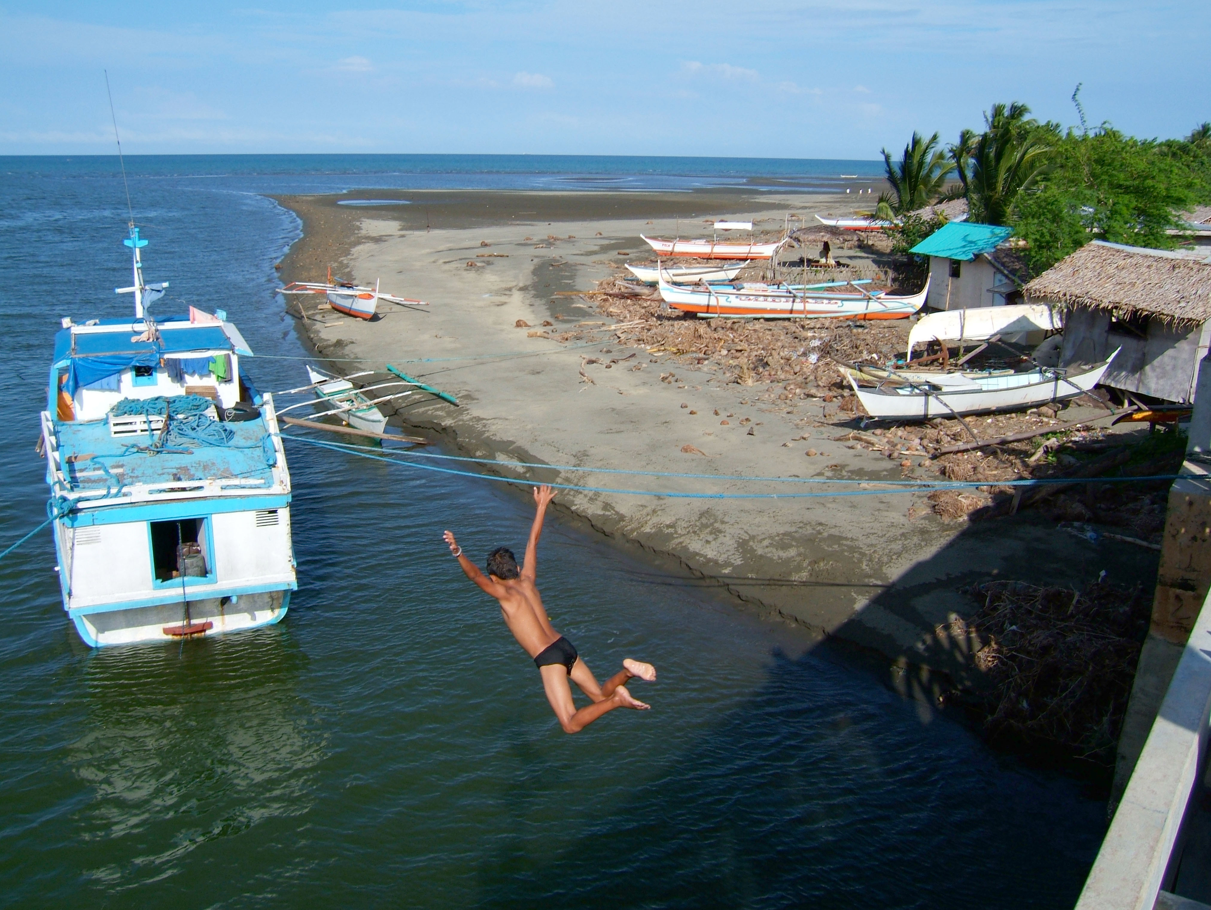 Kids diving of Naujan Estrella bridge Oriental Mindoro Philippines Feb 2006 34