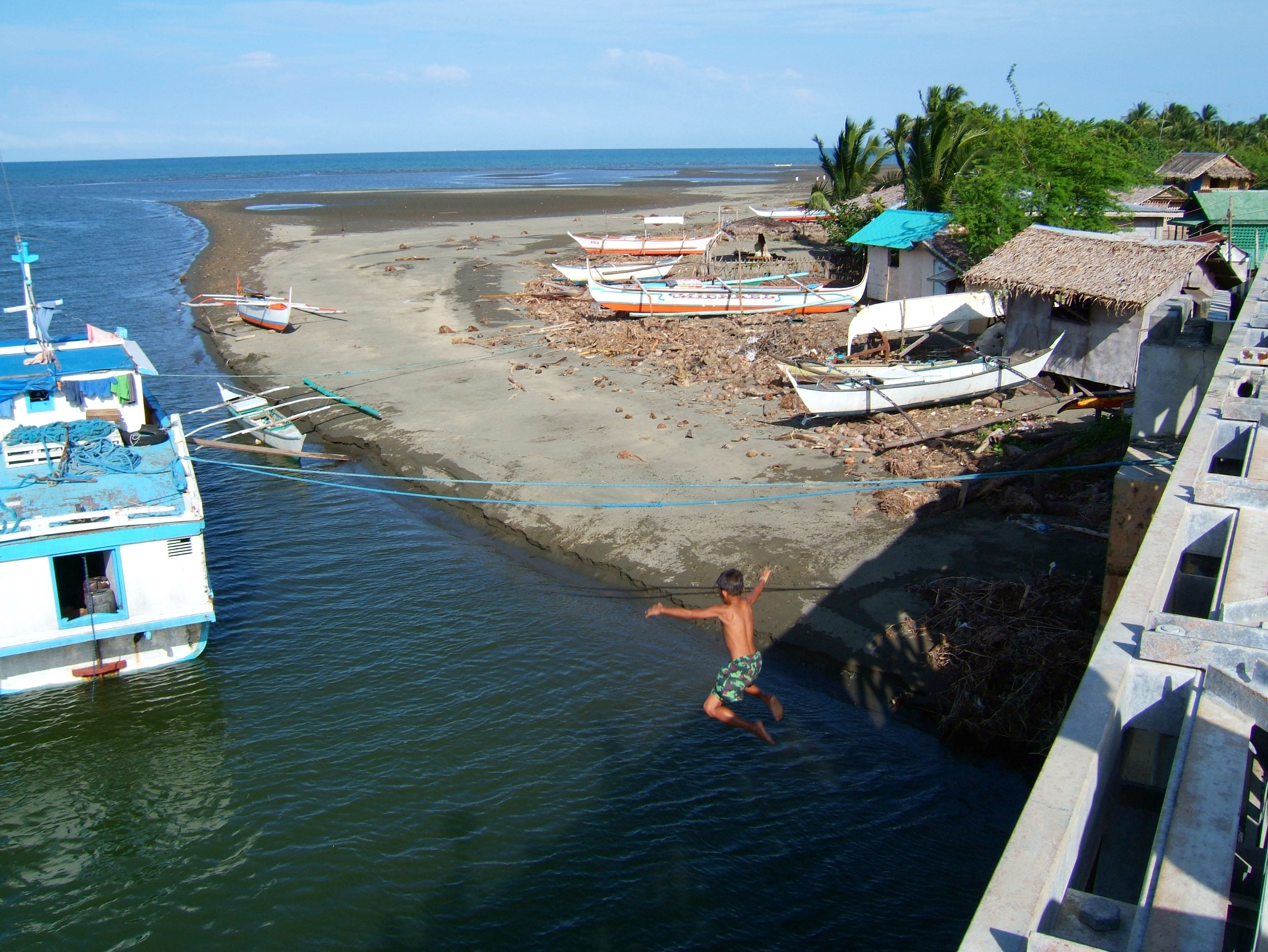 Kids diving of Naujan Estrella bridge Oriental Mindoro Philippines Feb 2006 36