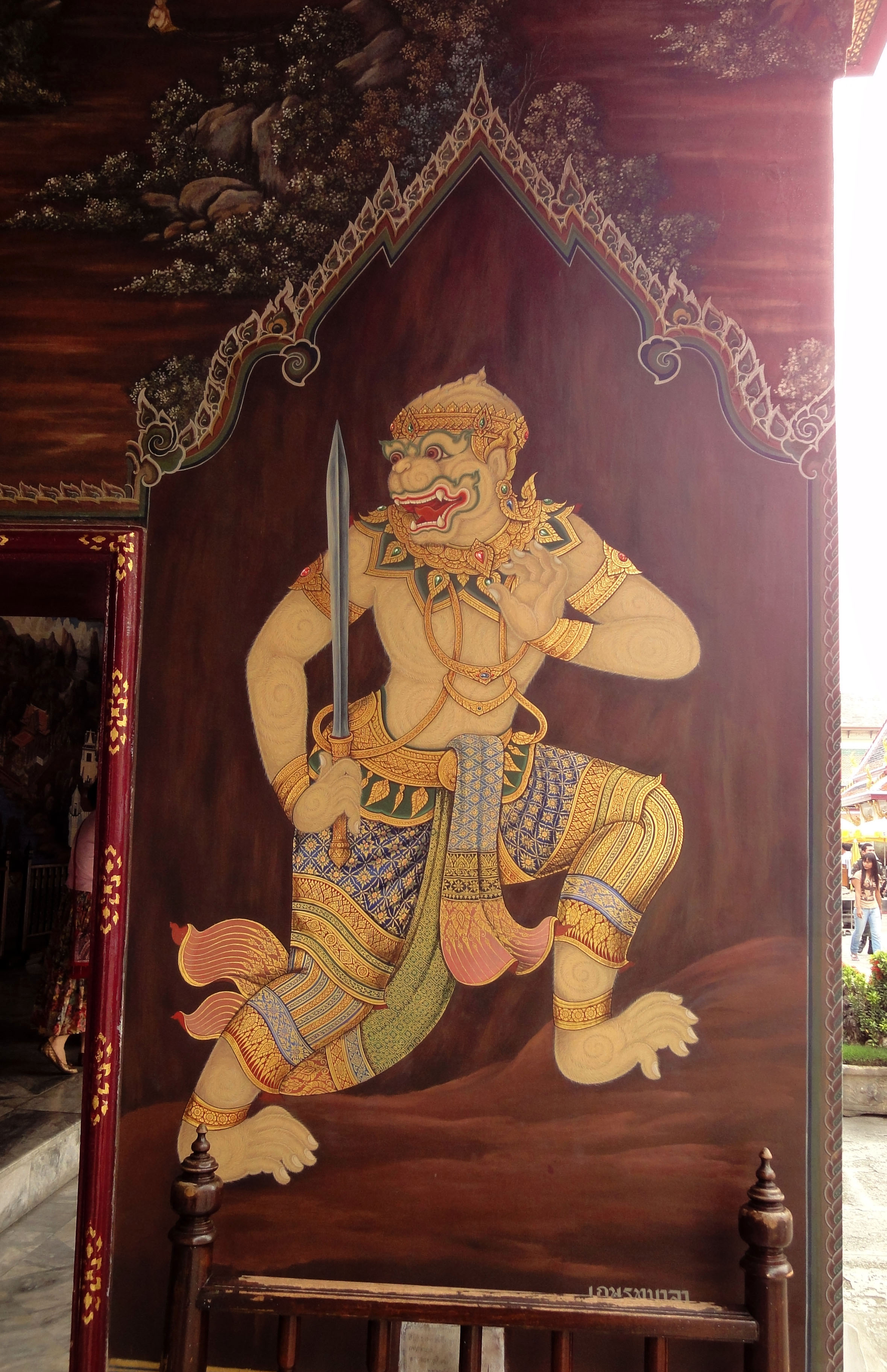Grand Palace temple doors Gold leaf Buddhist paintings Bangkok Thailand 04
