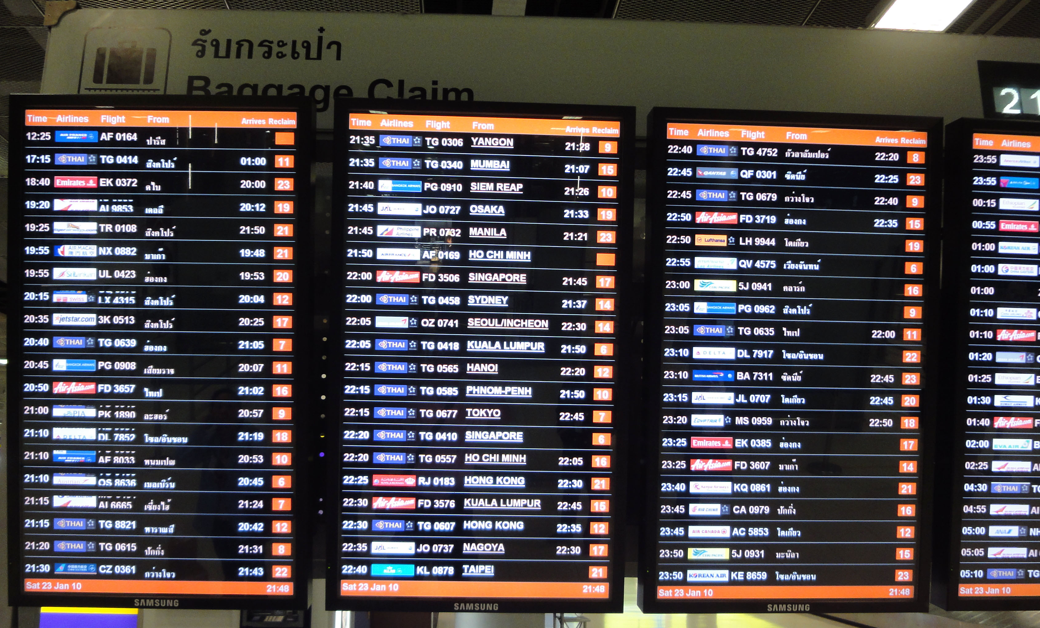 Flight Arival and Departure boards Suvarnabhumi Airport Thailand 2009 01