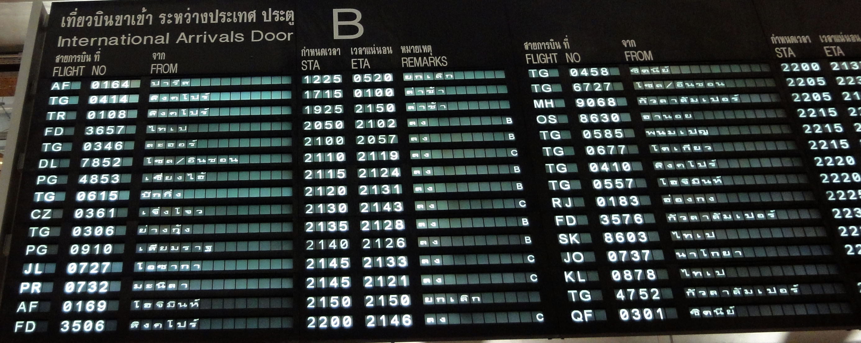 Flight Arival and Departure boards Suvarnabhumi Airport Thailand 2009 05
