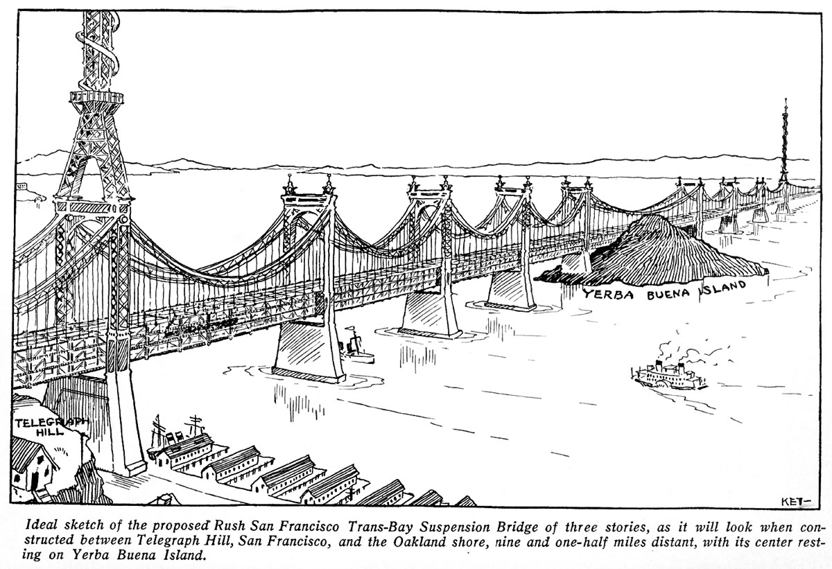 0 Sketch drawing of proposed Trans Bay Suspension Bridge 1913 0A