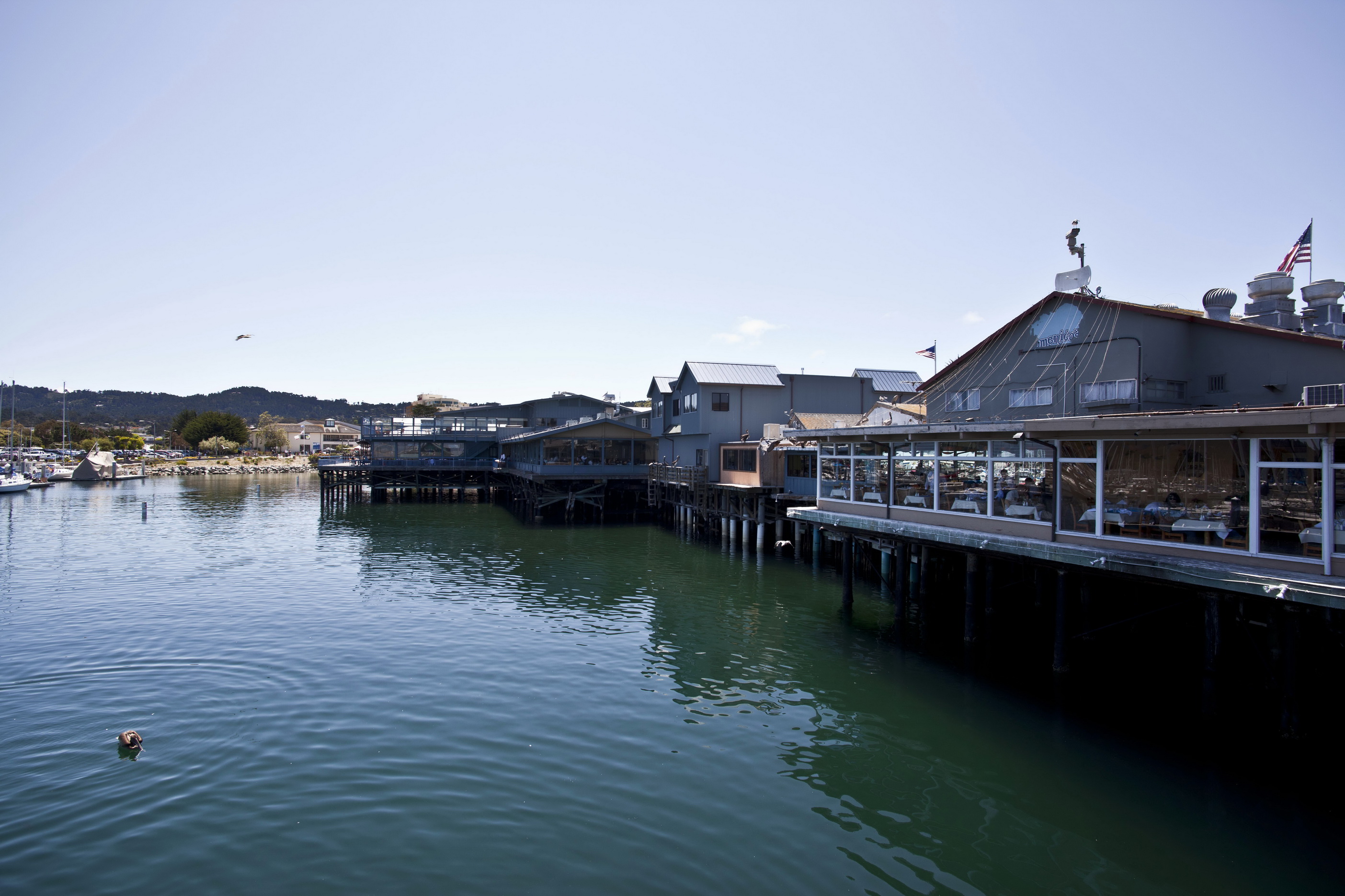 Old Fishermans Grotto Wharf restaurants viewd from the Marina Monterey CA 01