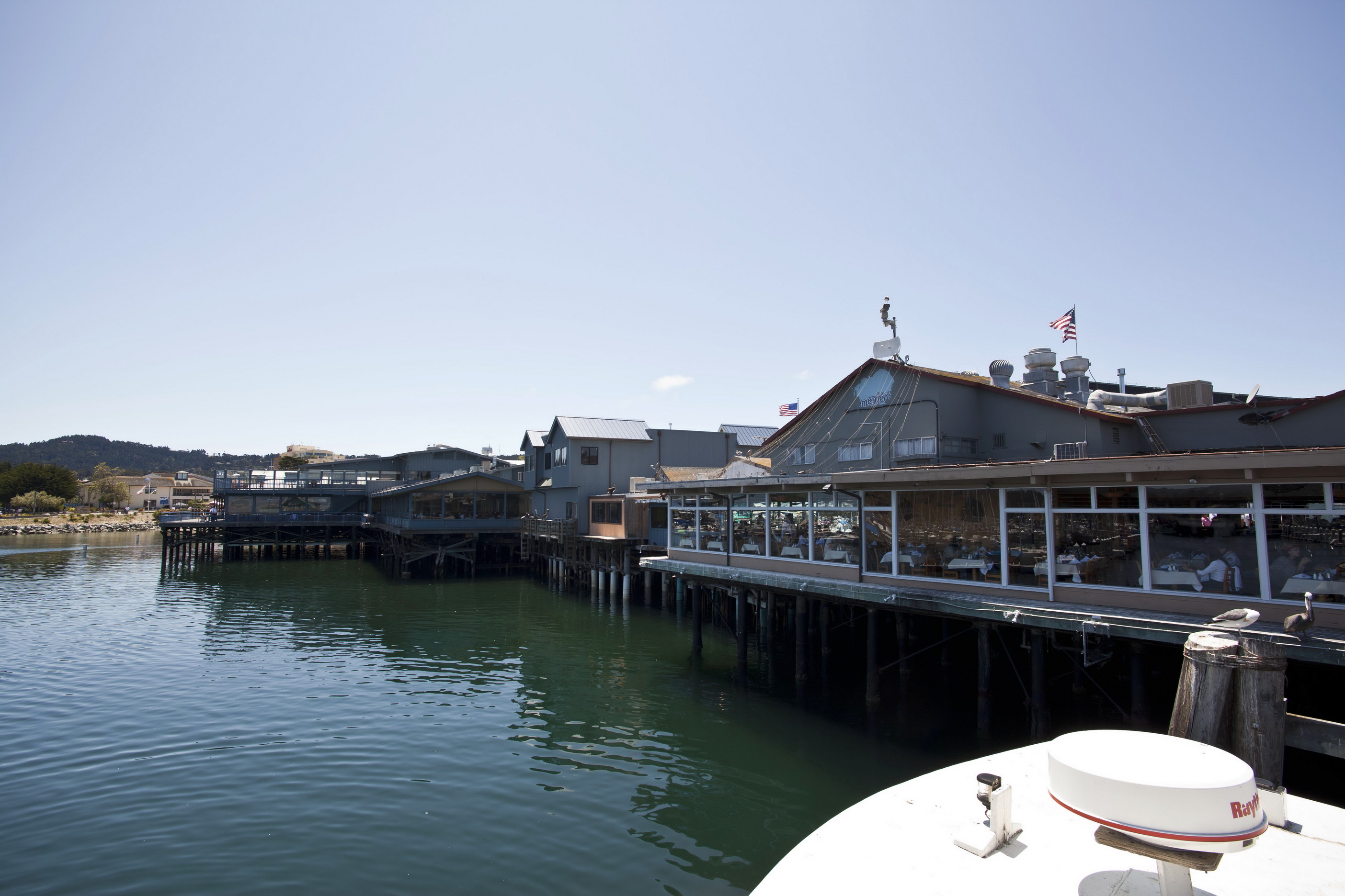 Old Fishermans Grotto Wharf restaurants viewd from the Marina Monterey CA 02