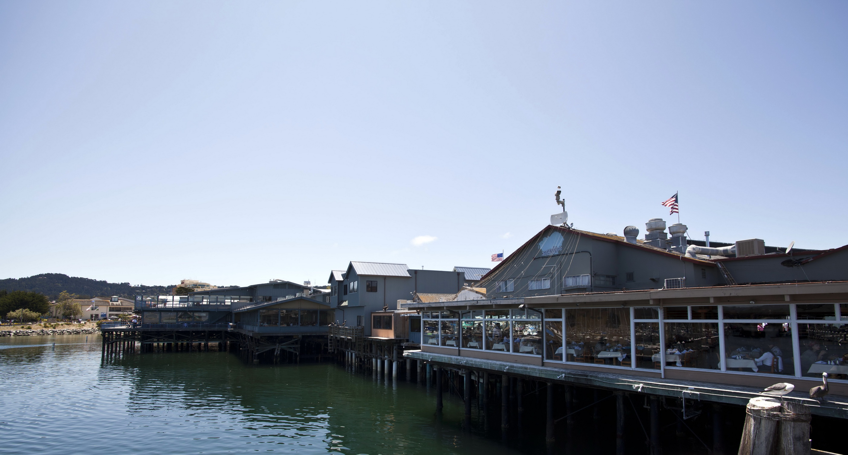 Old Fishermans Grotto Wharf restaurants viewd from the Marina Monterey CA 03