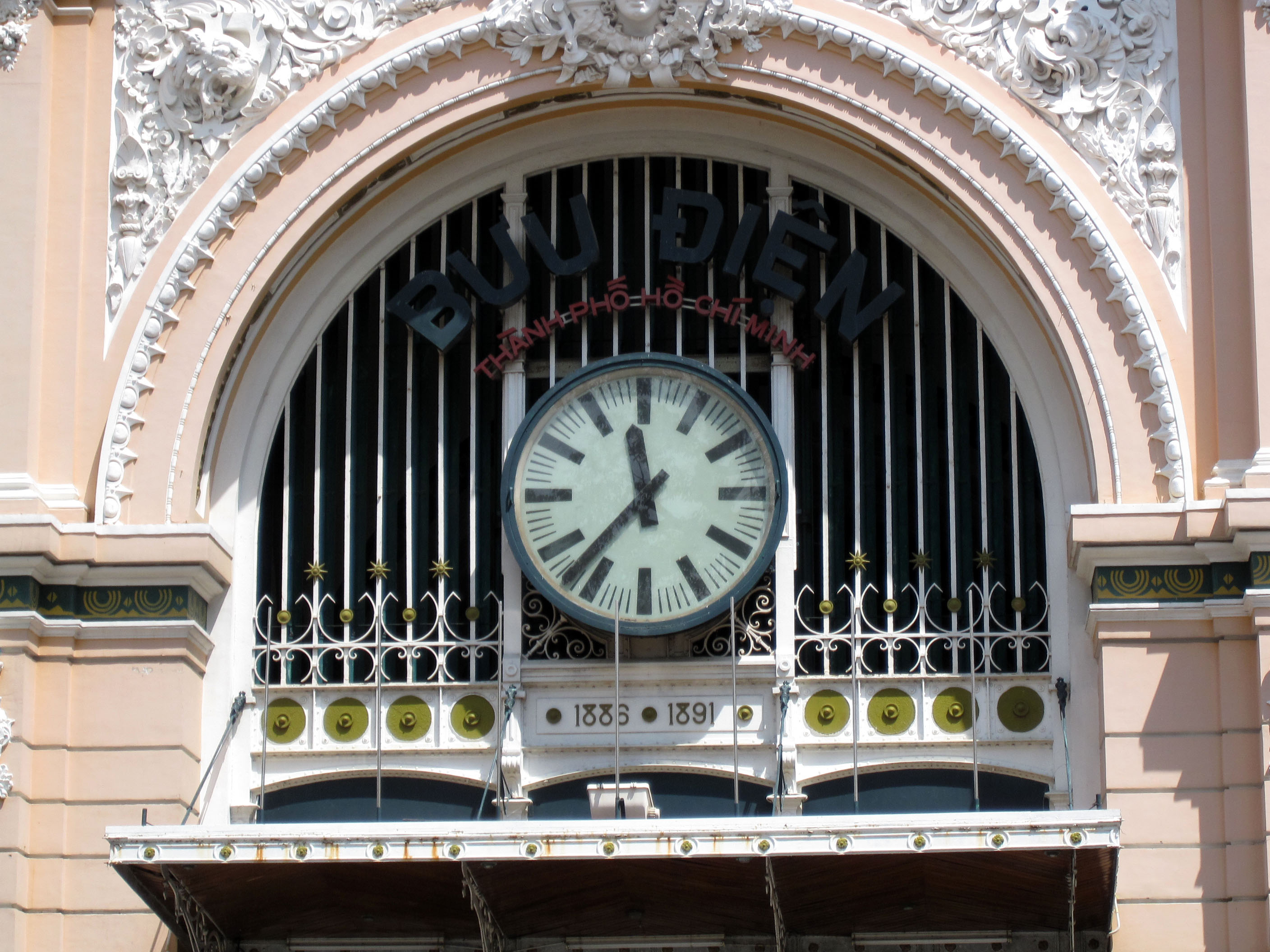 Main Post Office District 1 Ho Chi Minh City entrance clock Nov 2009 01
