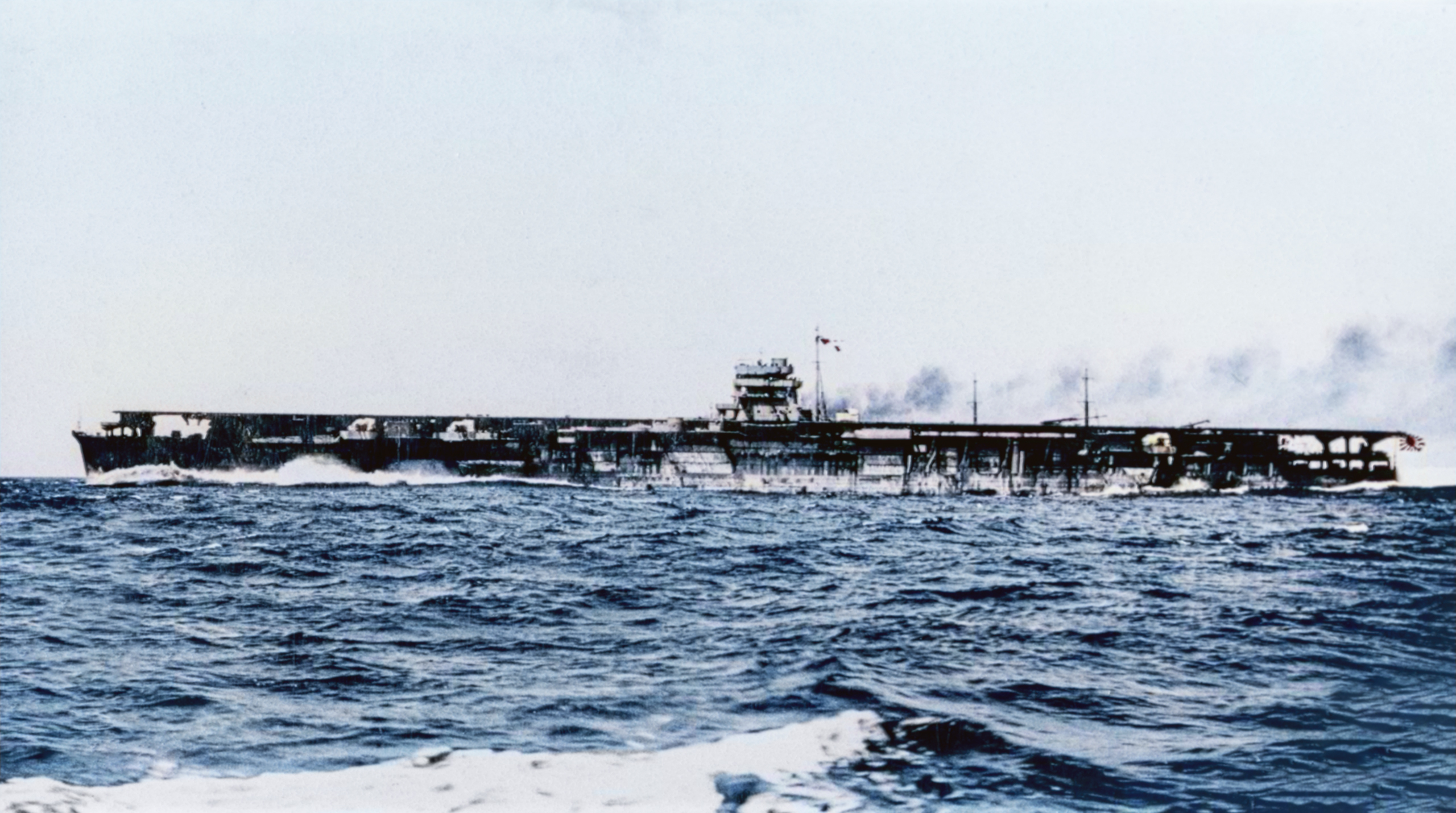 After a brief refit, Hiryū and three other fleet carriers of the First Air Fleet (Kido Butai) participated in the Battle of Midway in June 1942. After bombarding American forces on the atoll, the carriers were attacked by aircraft from Midway and the carriers USS Enterprise, Hornet, and Yorktown. Dive bombers from Yorktown and Enterprise crippled Hiryū and set her afire. She was scuttled the following day after it became clear that she could not be salvaged. The loss of Hiryū and three other IJN carriers at Midway was a crucial strategic defeat for Japan and contributed significantly to the Allies' ultimate victory in the Pacific.
