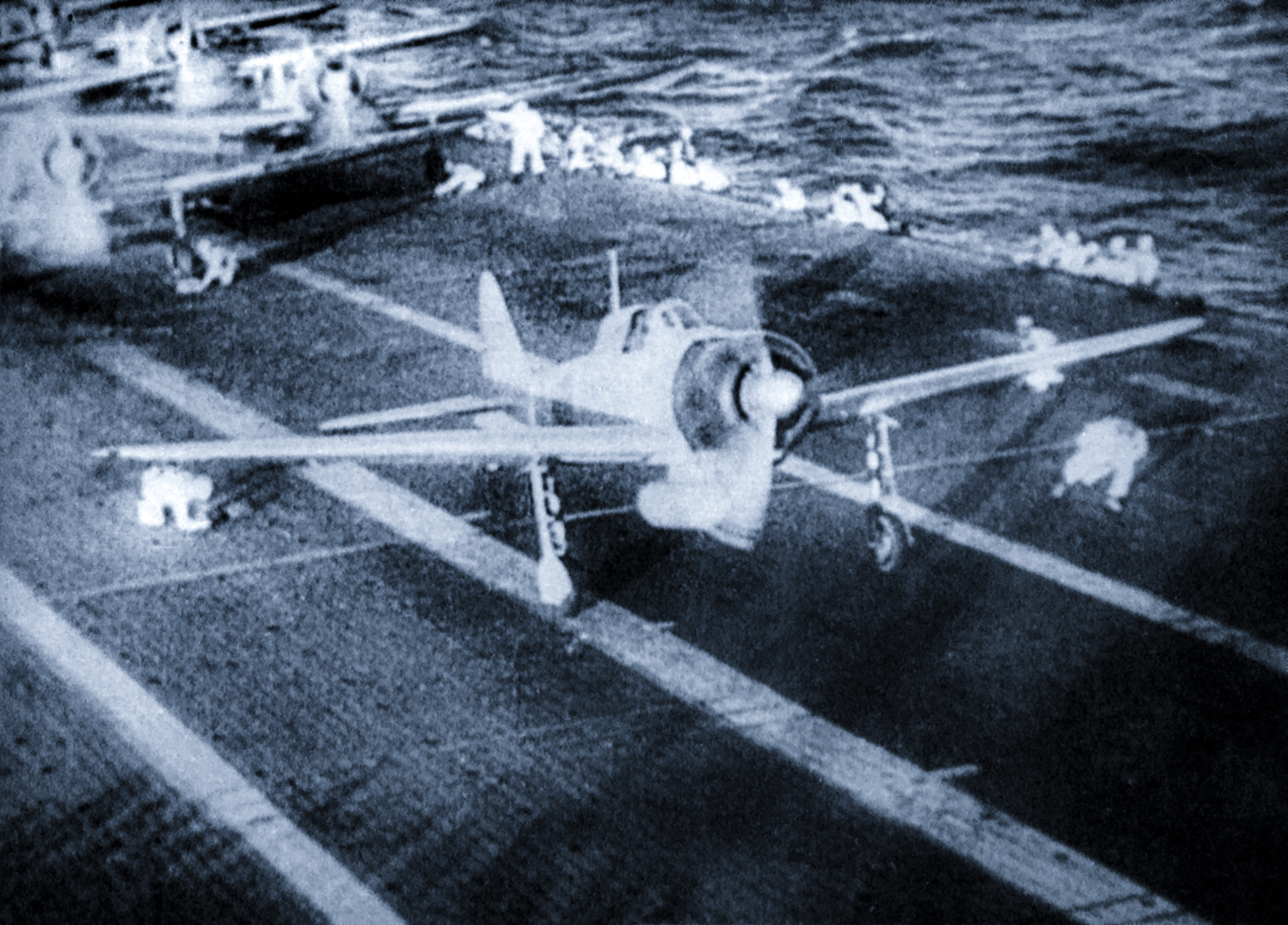 Mitsubishi A6M2-21 Zero aboard Japanese carrier Shokaku taking off to attack Pearl Harbor 7th Dec 1941-02