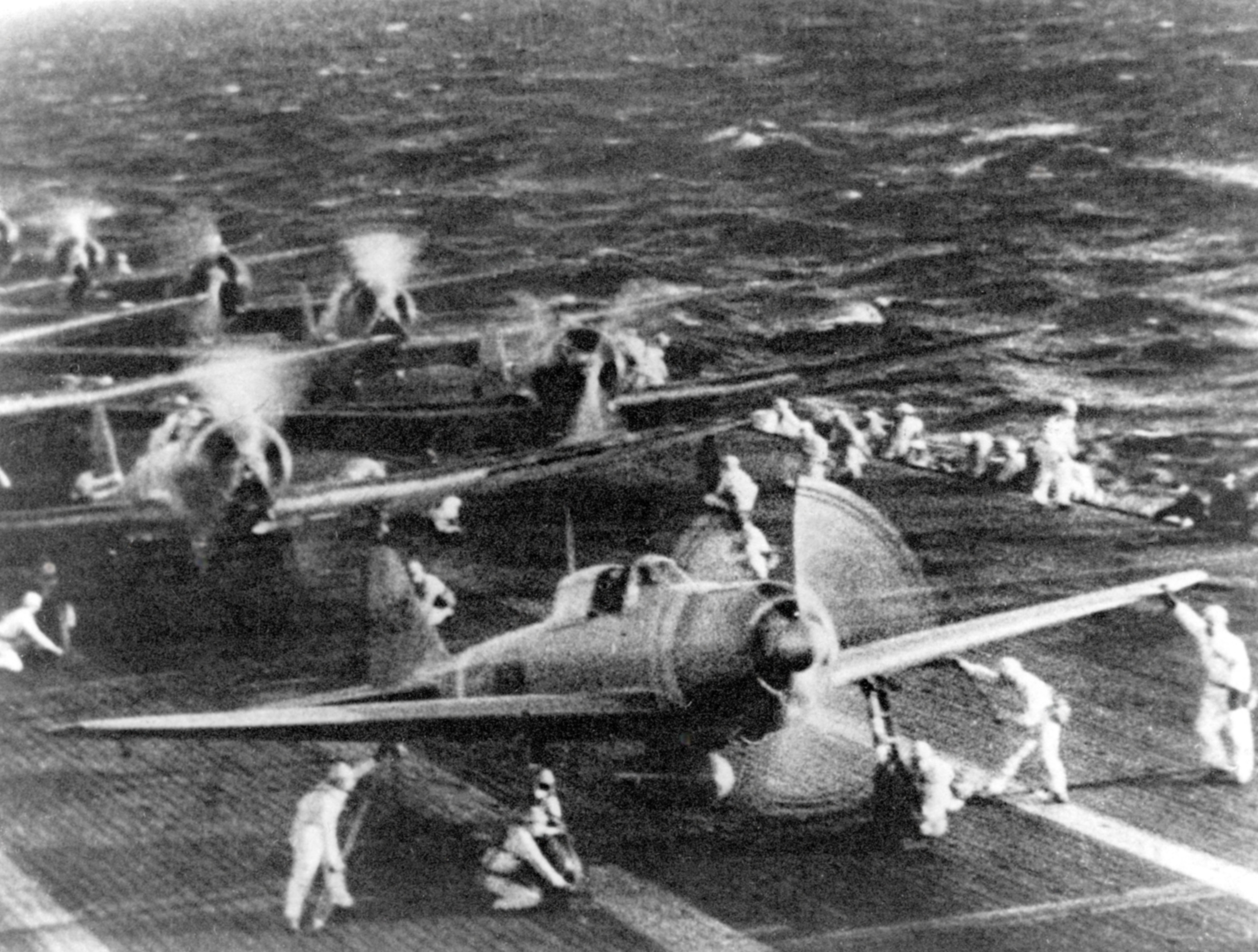 Mitsubishi A6M2-21 Zero aboard Japanese carrier Shokaku taking off to attack Pearl Harbor 7th Dec 1941-03