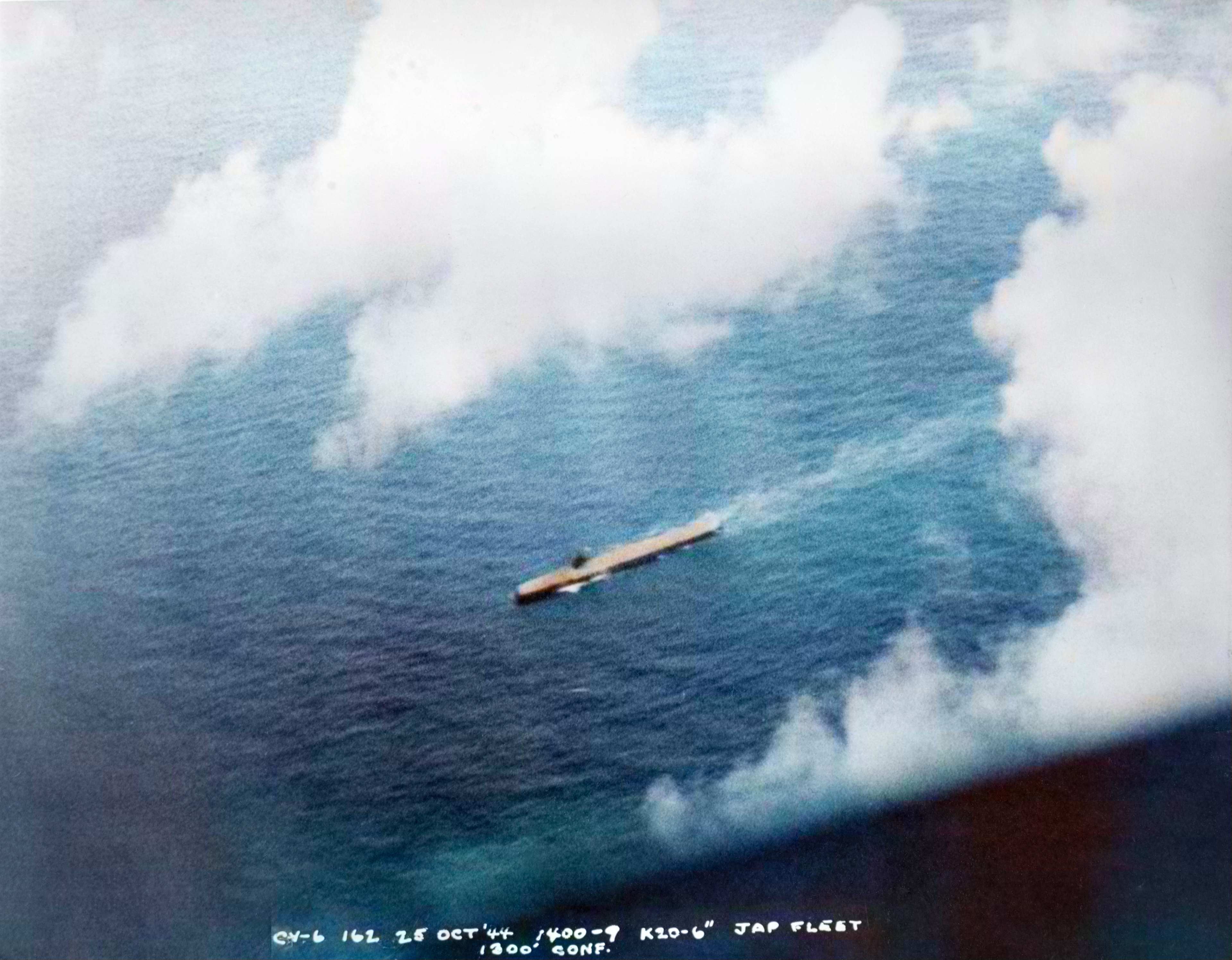 USN photos taken during battle off Cape Engano showing one of the five carriers involved during the battle 25th Oct 1944-NH 95545