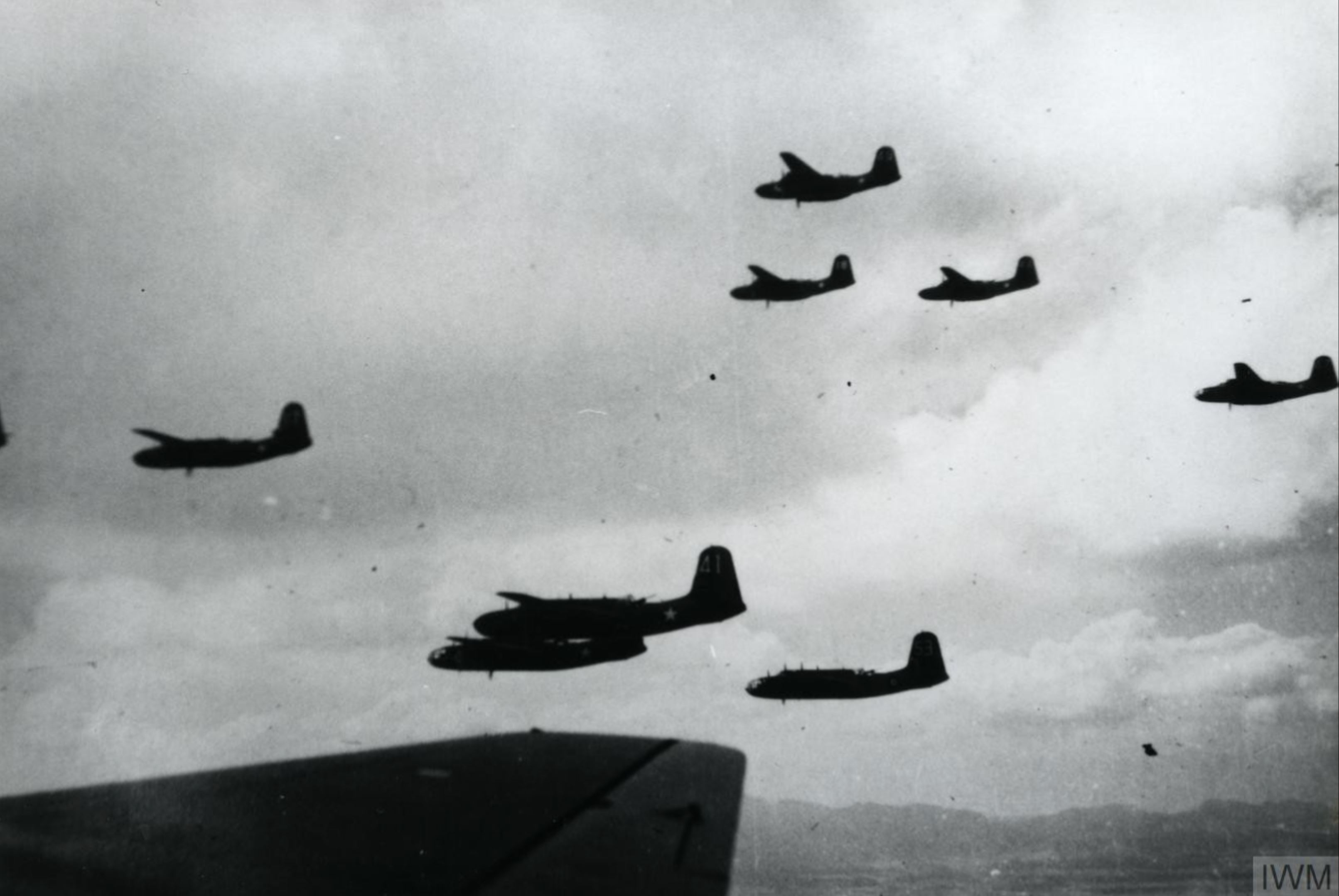 Douglas A 20 Havoc 12AF XXII TAC 47BG flying in formation during a raid FRE11379