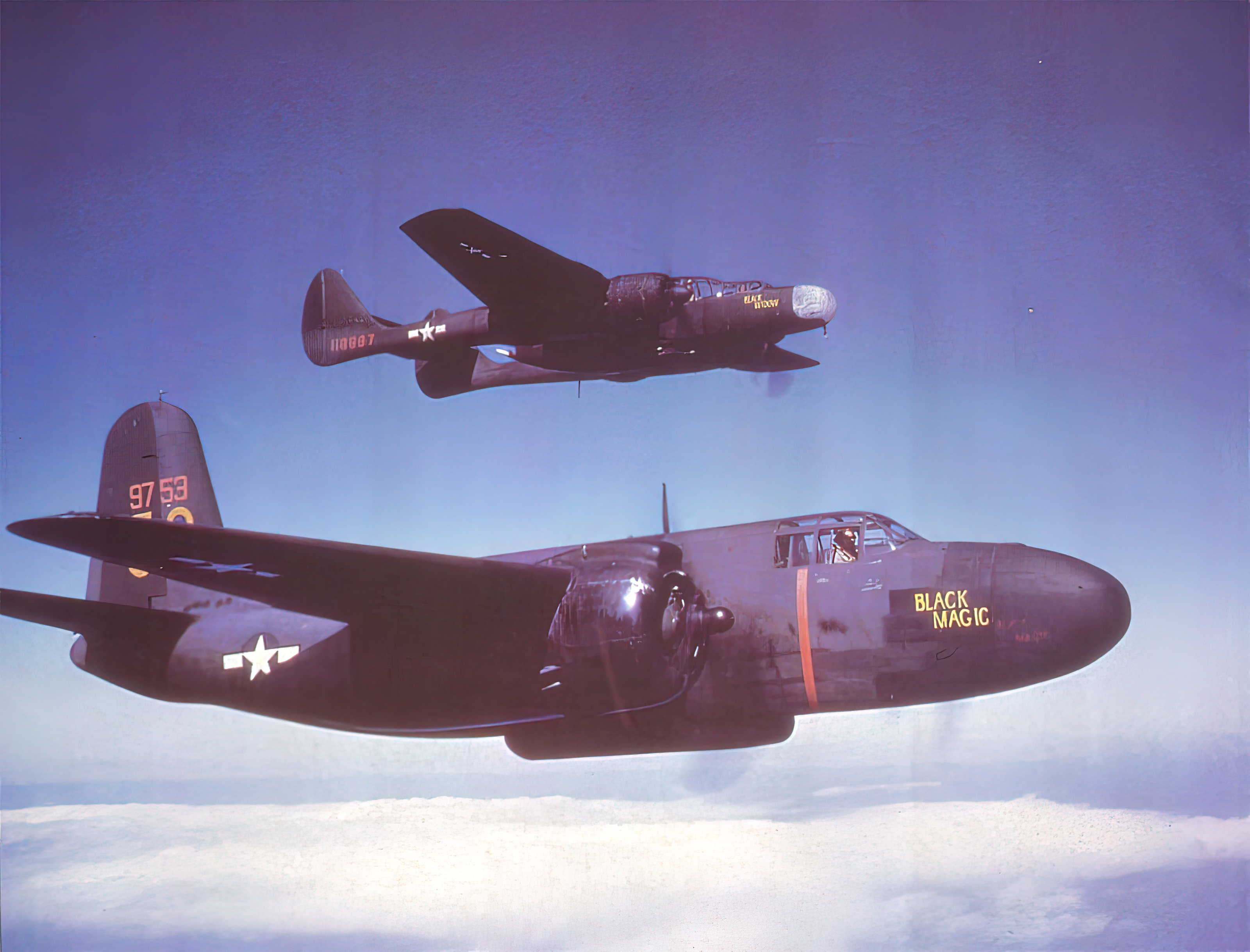 39 753 P 70 Havoc nightfighter with its type replacement P 61 Black Widow in flight 01