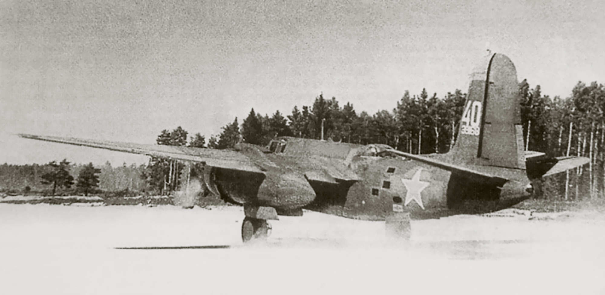 43 9068 A 20G Boston 1GvMTAP Baltic Fleet White 40 taxiing at iys base in Panevezys Russia Sep 1944 01