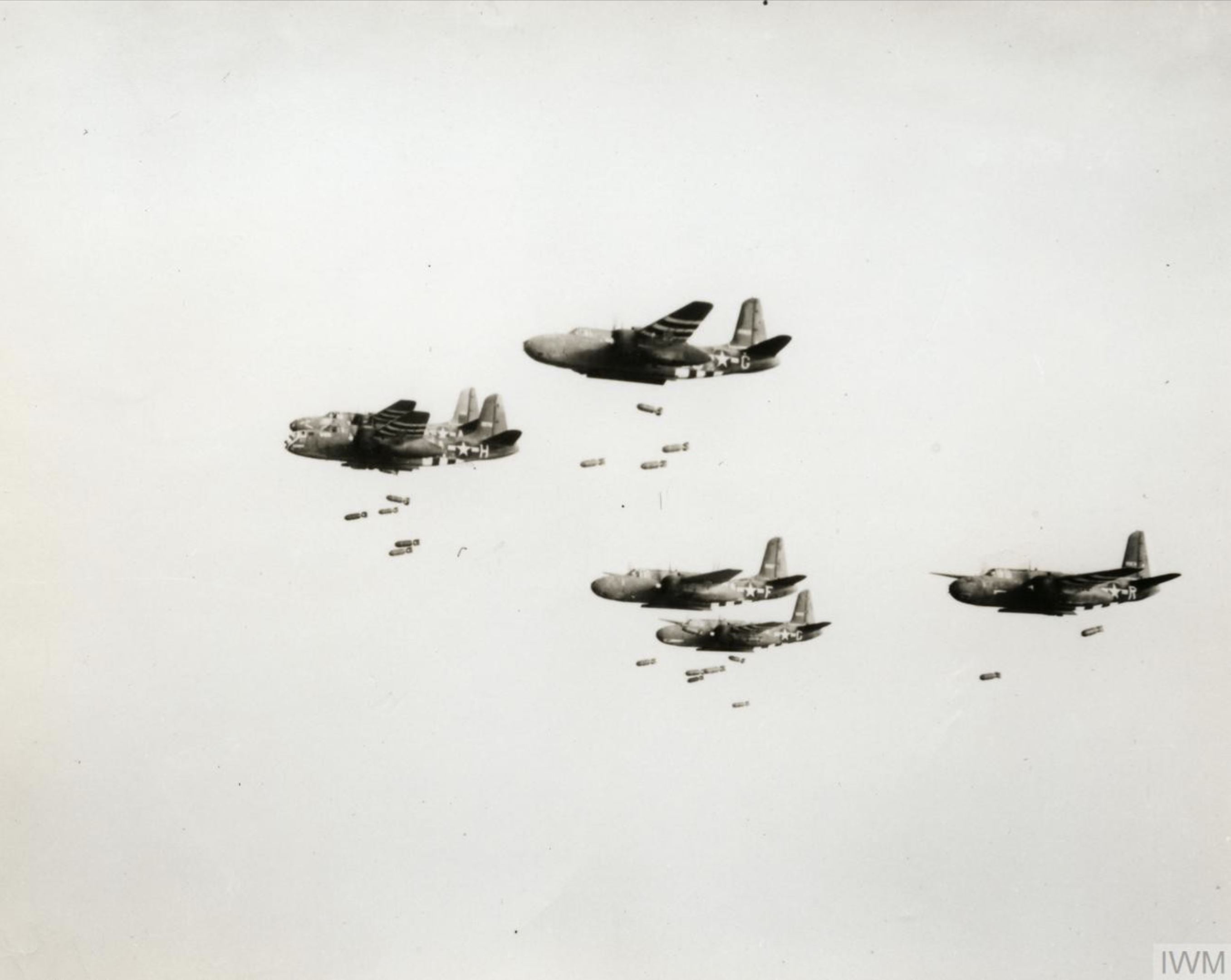 Douglas A 20 Havocs 9AF 416BG669BS with 2AG 2AH 2AA 2AF 2AG and 2AR drop their bombs over the DZ FRE11114