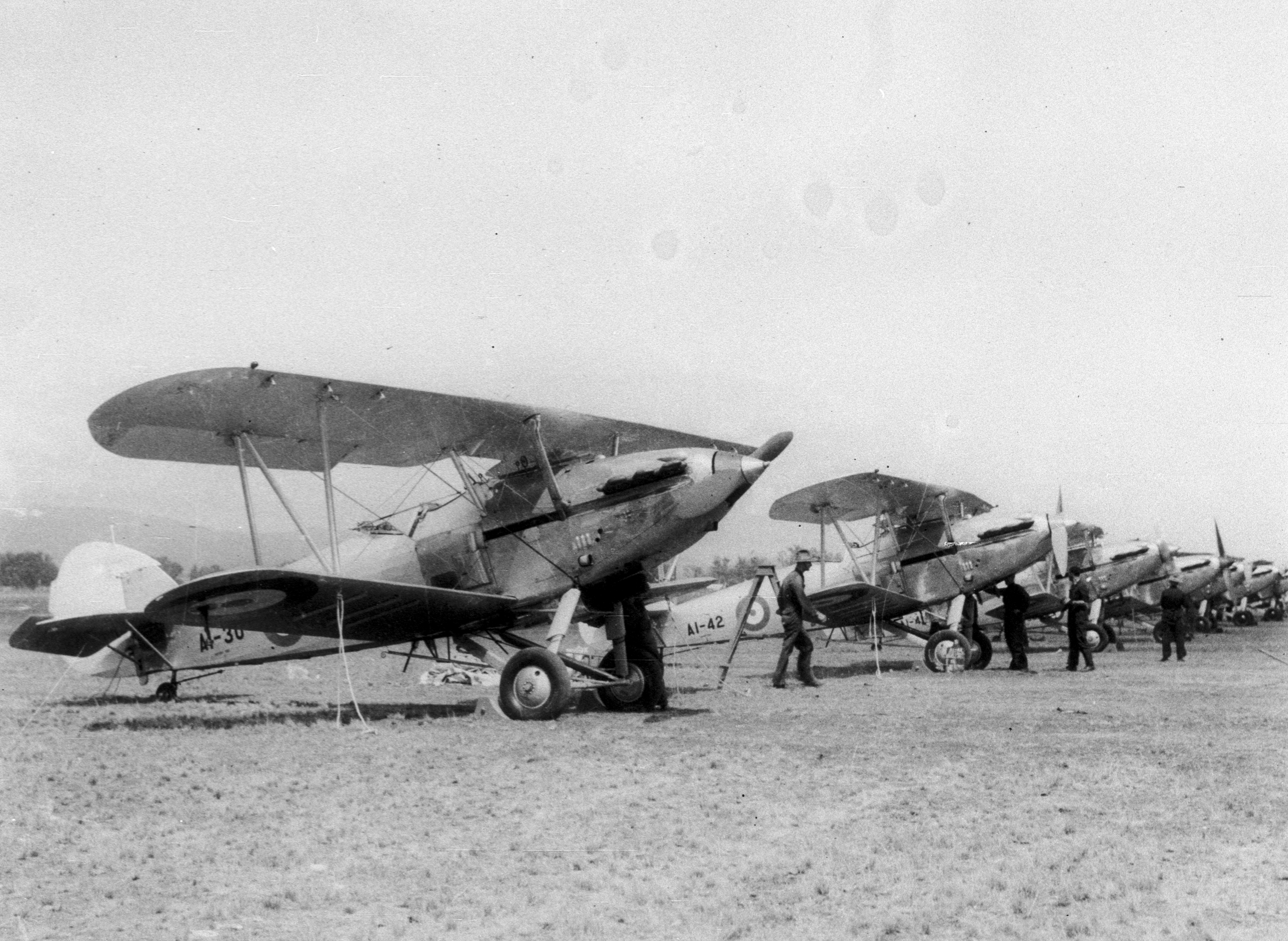 RAAF Hawker Demons 3Sqn A1 30 and A1 42 lined up at Nandowra aerodrome Scone NSW Australia 01