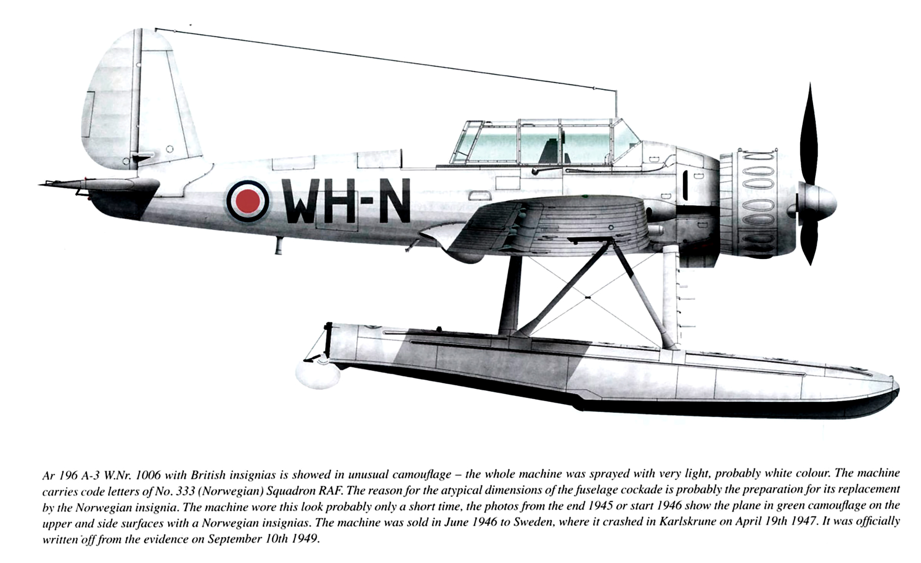 Arado Ar-196A3 RAF 333Sqn WNr 1006 Norway 1945 to Sweden 1946 crashed Karlskrune 19th Apr 1947 0A