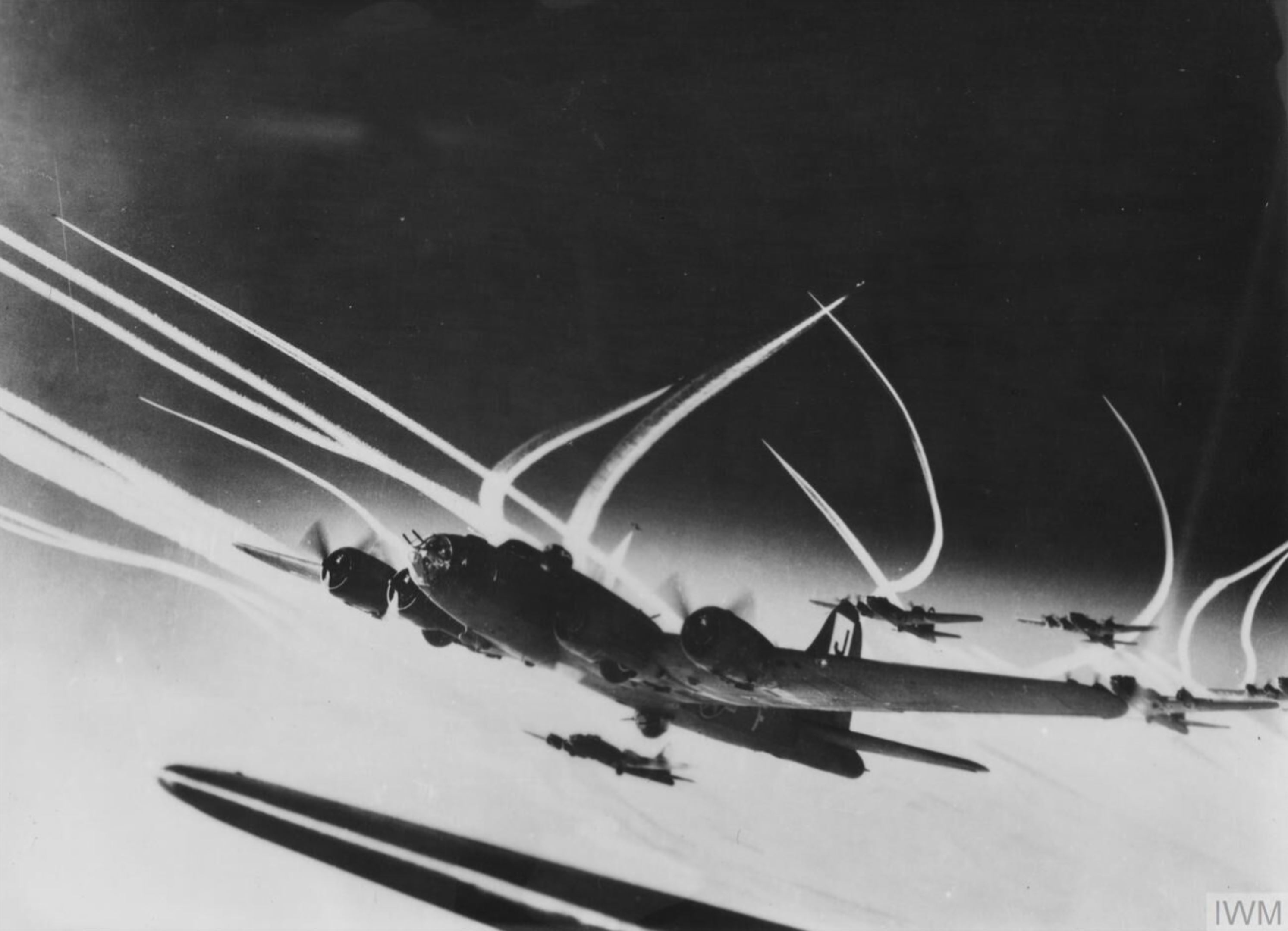 Due to the American daylight strategy the Luftwaffe where often able to attack the bombers in large numbers often without fighter protection. The B-17's and B-24's flew in tight box formations protecting each other after all it was a fight to the death. The B-17's held their own and many Luftwaffe pilots would hold off attacking the group and wait for damaged aircraft to drop from formation before attacking. The B-17 Fortress became an iconic symbol of defiance especially to the Germans who would see the masses of vapour trails and hope it wasn't them on the receiving end of the raid.