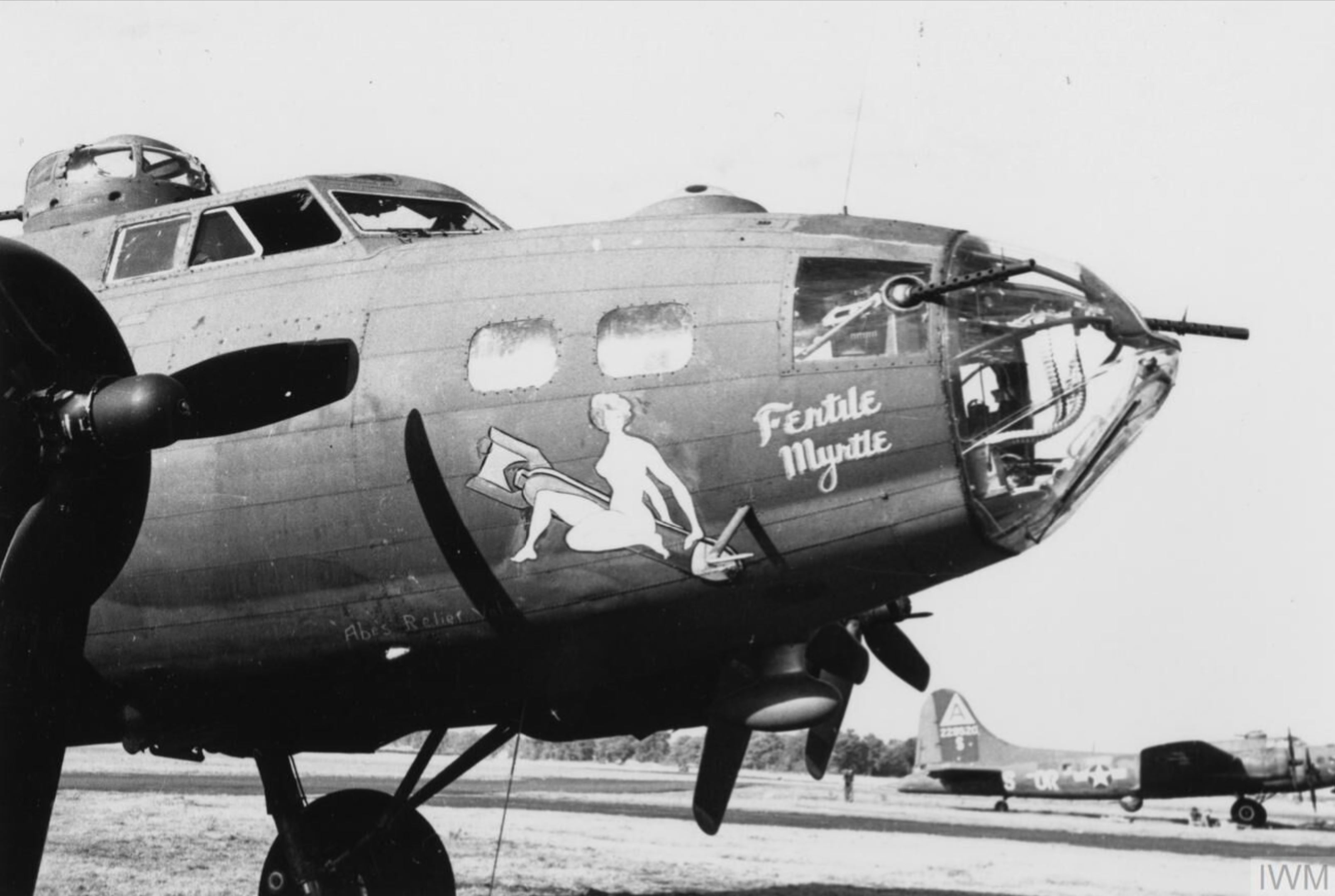 Boeing B 17F Fortress 8AF 91BG323BS OR Fertile Myrtle nose art right side FRE3664