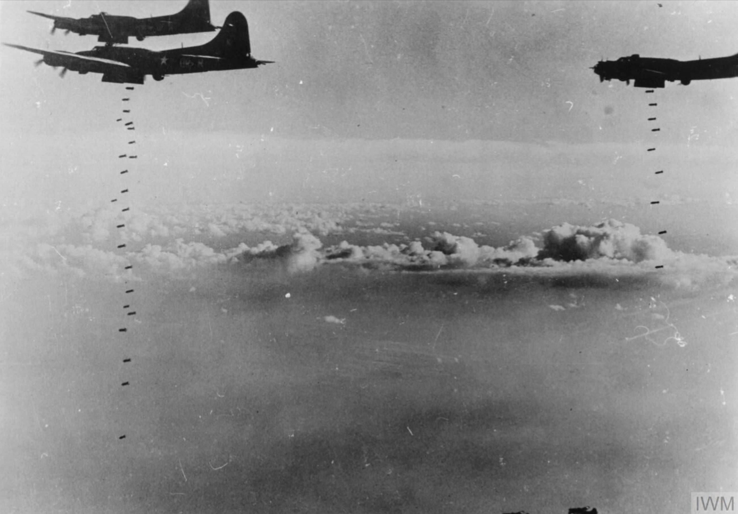 Due to the American daylight strategy the Luftwaffe where often able to attack the bombers in large numbers often without fighter protection. The B-17's and B-24's flew in tight box formations protecting each other after all it was a fight to the death. The B-17's held their own and many Luftwaffe pilots would hold off attacking the group and wait for damaged aircraft to drop from formation before attacking. The B-17 Fortress became an iconic symbol of defiance especially to the Germans who would see the masses of vapour trails and hope it wasn't them on the receiving end of the raid.