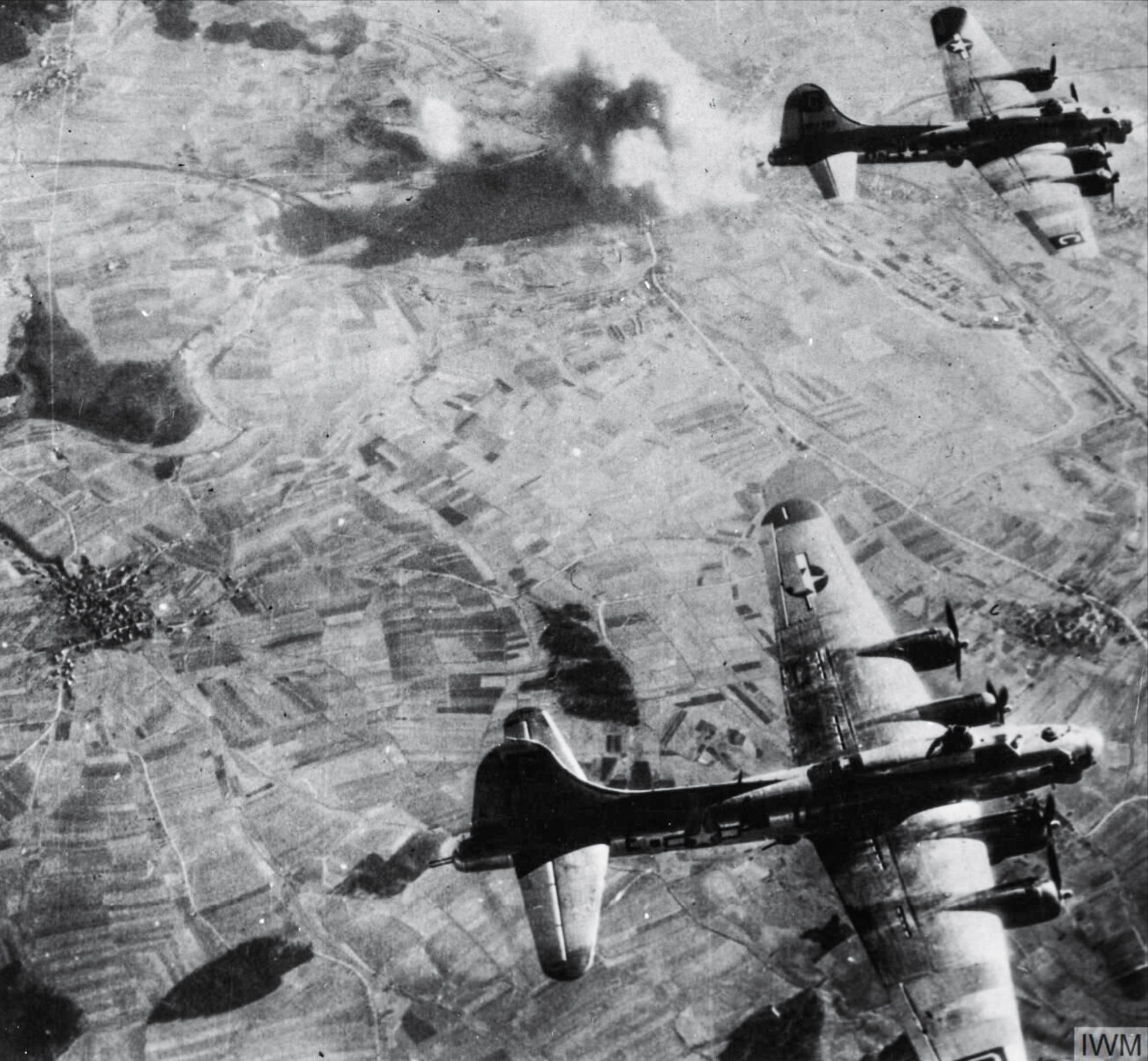 Due to the American daylight strategy the Luftwaffe where often able to attack the bombers in large numbers often without fighter protection. The B-17's and B-24's flew in tight box formations protecting each other after all it was a fight to the death. The B-17's held their own and many Luftwaffe pilots would hold off attacking the group and wait for damaged aircraft to drop from formation before attacking. The B-17 Fortress became an iconic symbol of defiance especially to the Germans who would see the masses of vapour trails and hope it wasn't them on the receiving end of the raid.
