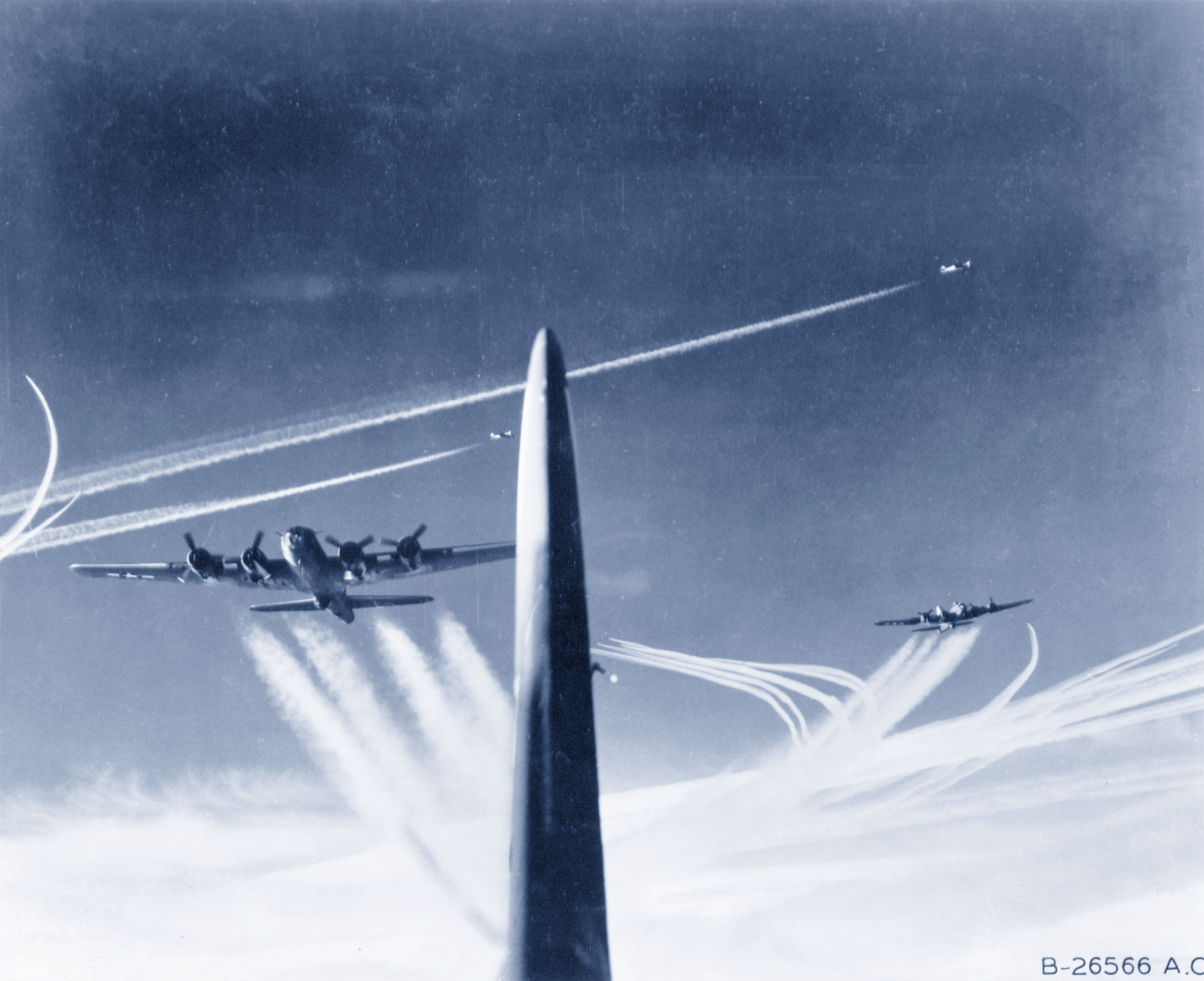 Formations of 8AF B-17F Fortresses and Fighter vapor trails over Germany 1943 NA1269