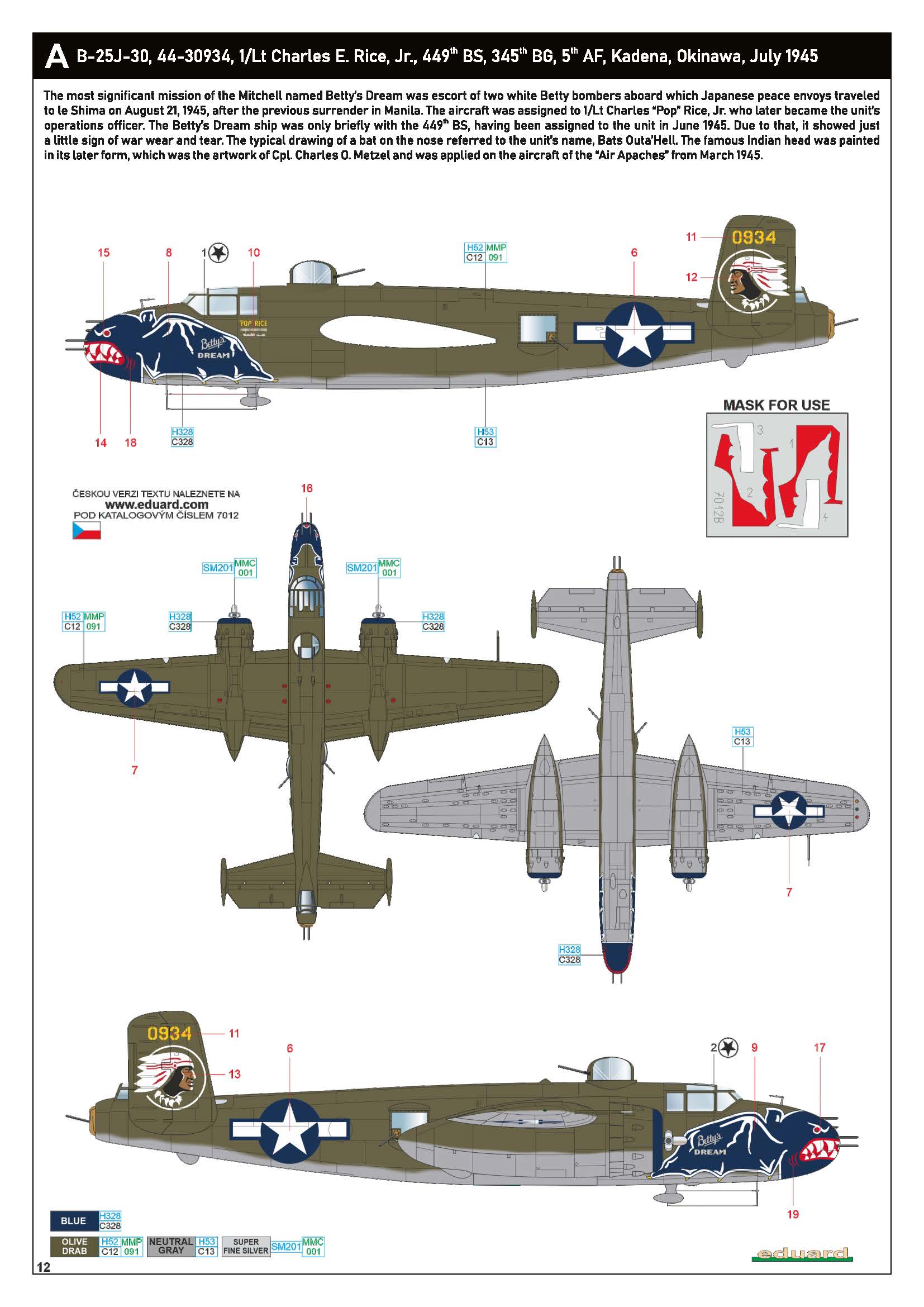 44-30934 B 25J Mitchell 5AF 345BG449BS 1Lt Charles E Rice based at Kadena Okinawa July 1945-Eduard 0C