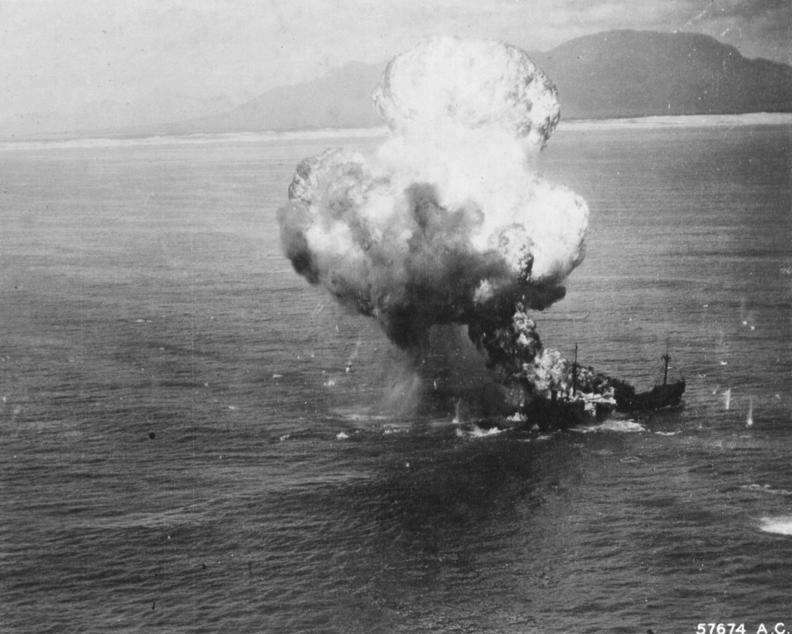 5AF 345BG B 25's hit a Japanese petrol tanker off the Indo China (Vietnam) coast June 1945 01