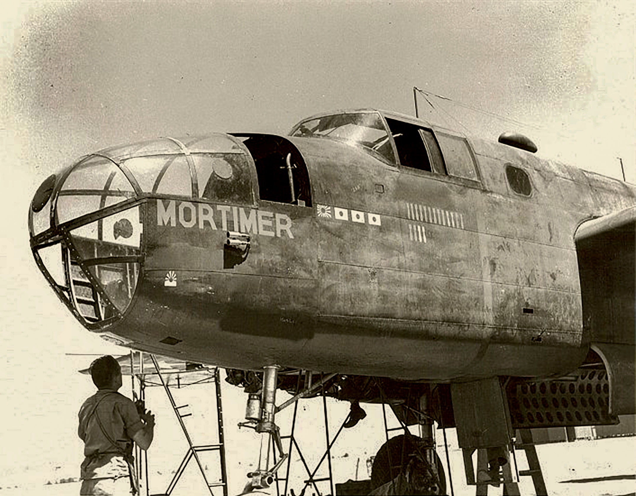 41-12443-B 25C Mitchell 5AF 3BG90BS Mortimer nose art left side Australia 01