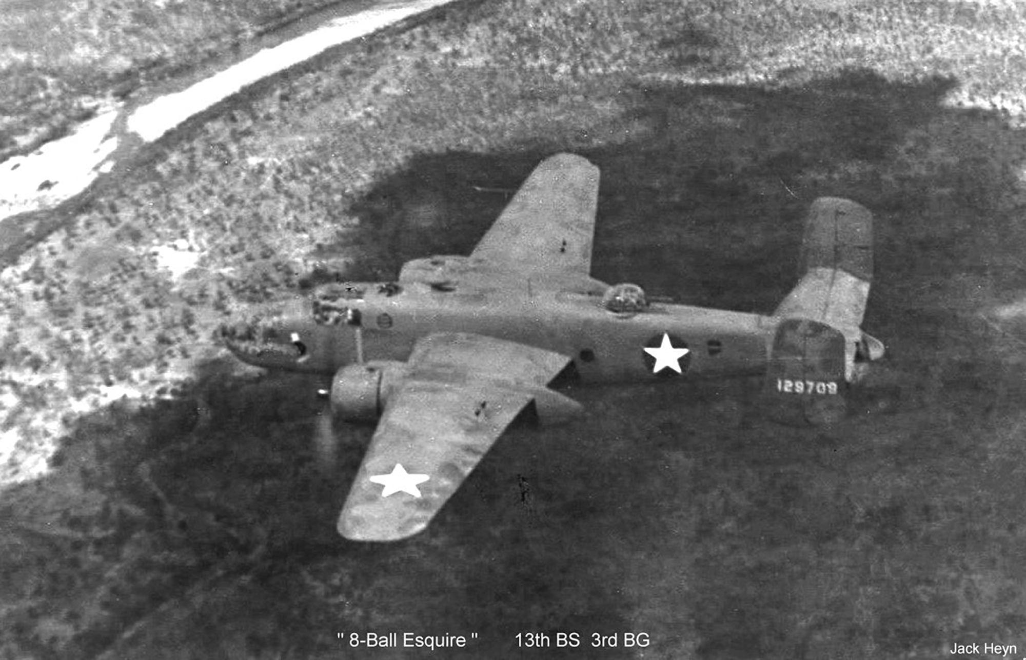 41-29709 B 25D Mitchell 5AF 3BG13BS Eight Ball Esq in flight nose art left side Australia 01