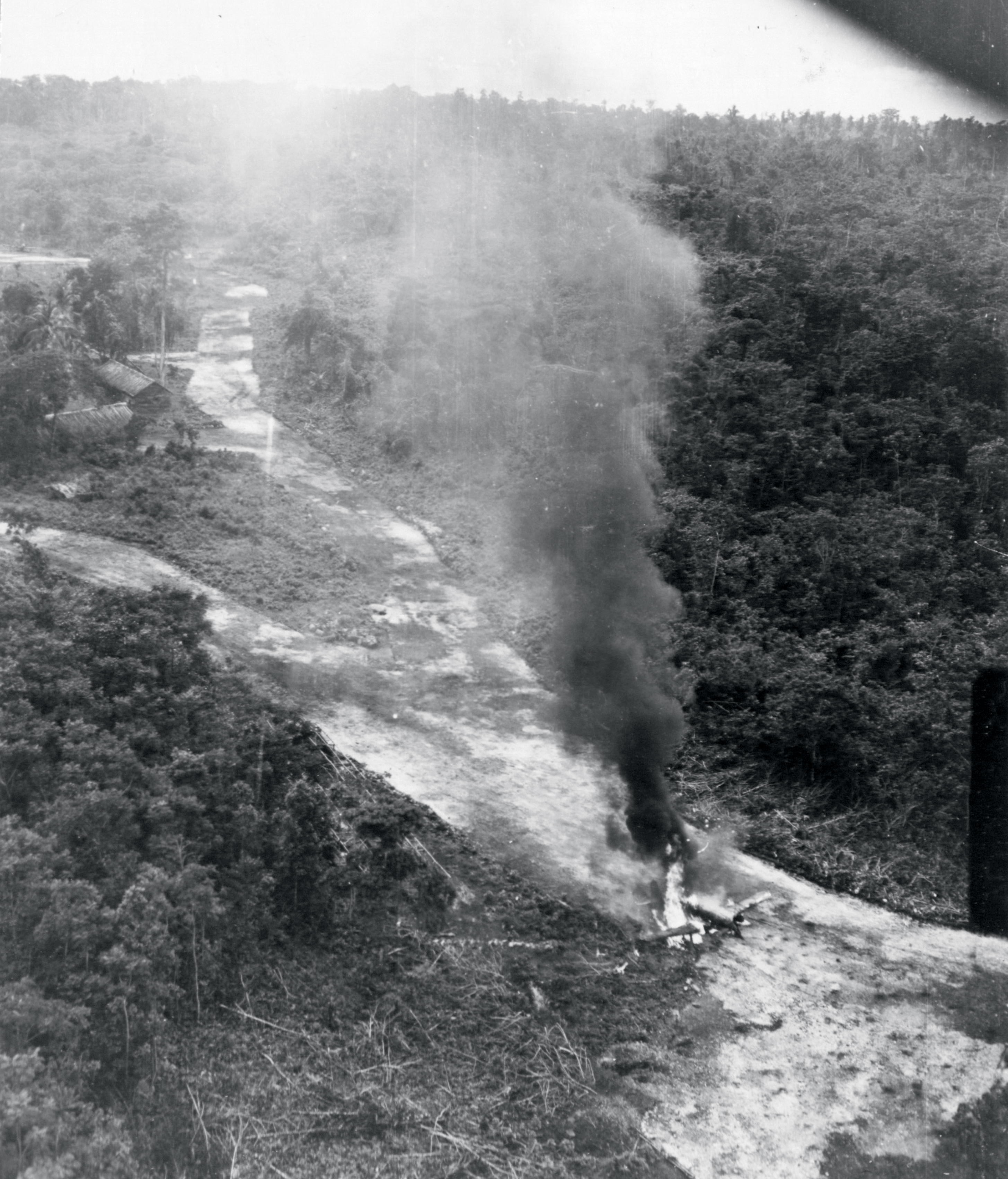 5AF 3BG8BS Grim Reapers destroy a Jap aircraft at Kamiri South Sulawesi Indonesia 21st May 1944-NA028