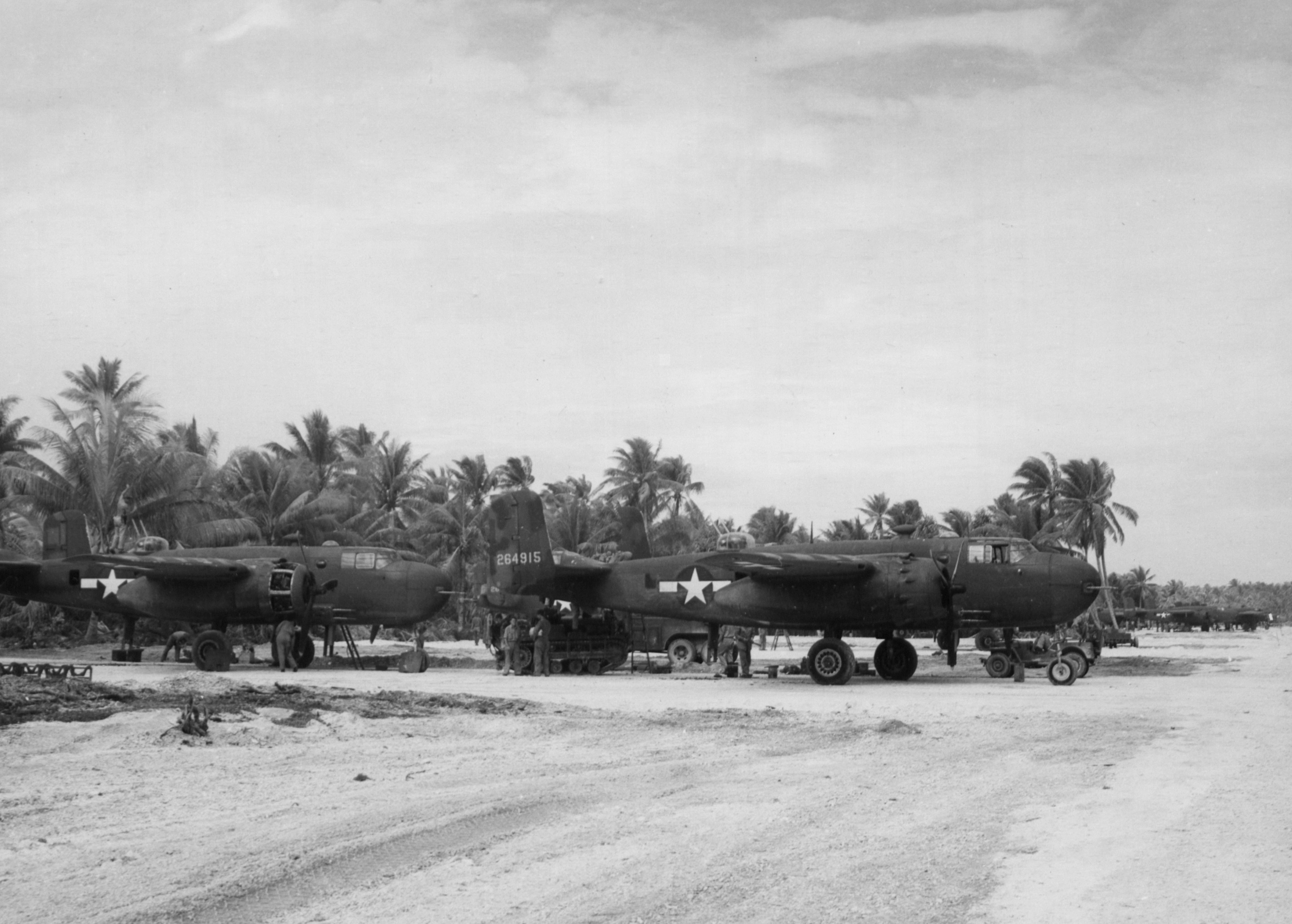 42-64915 B 25G Mitchell 7AF 41BG820BS at Mullinnix airfield Tarawa Gilbert Islds 12th Jan 1944-0