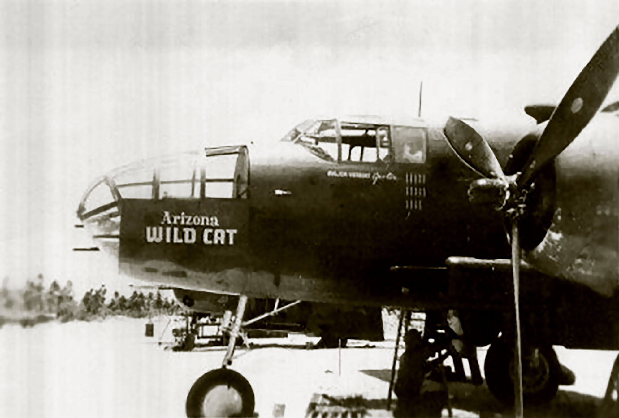 B 25 Mitchell 7AF 41BG47BS Arizona Wildcat nose art left side Gilbert Islands 01